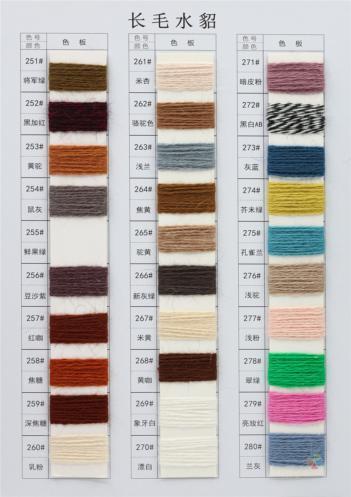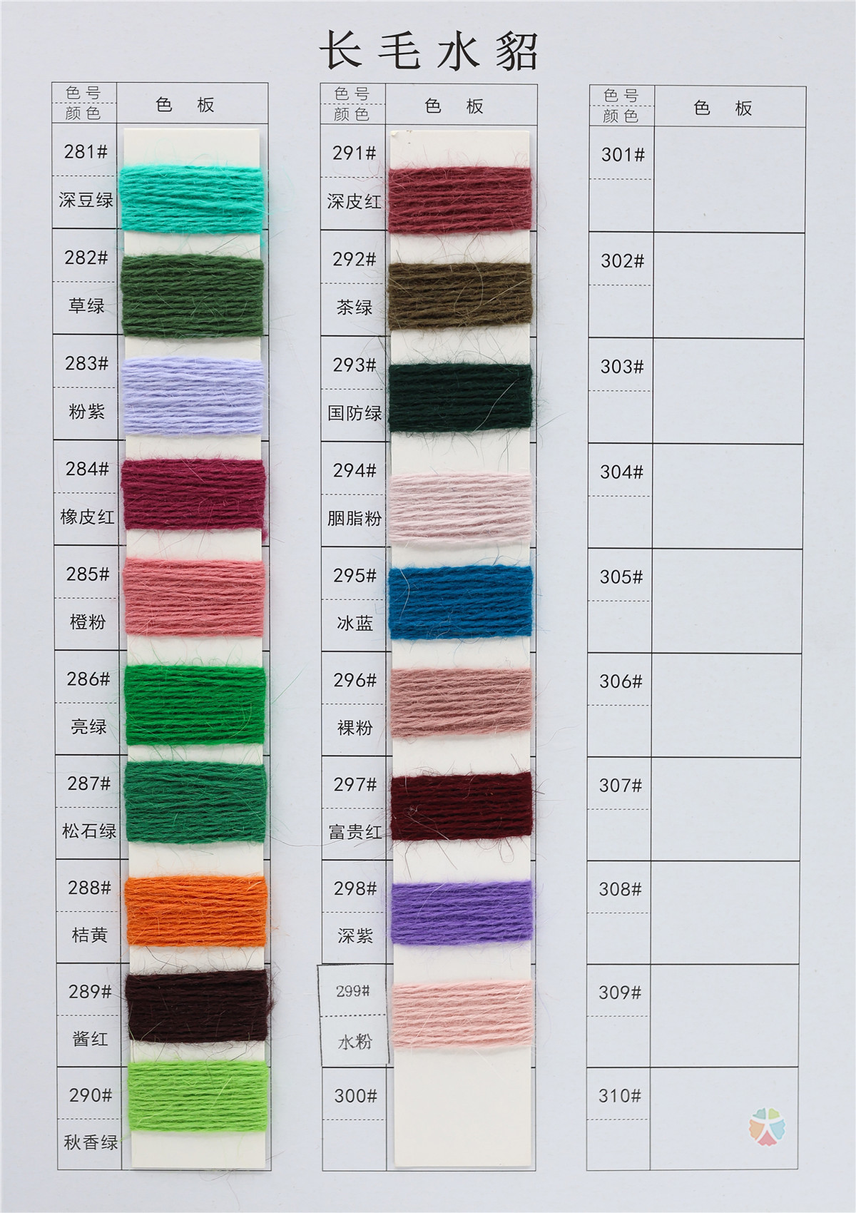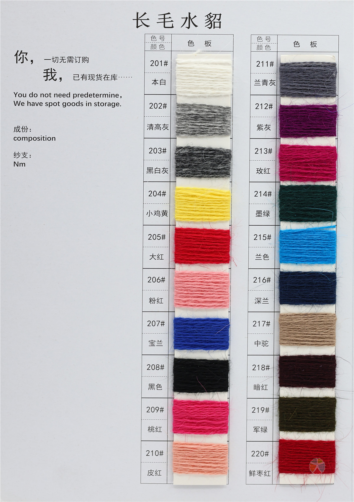 主营:2/48丝光真三七、100%全羊毛、2/26NM精品羊毛绒(羊绒风格)、100%特细美丽诺羊毛(纯羊毛风格)、长毛水貂绒、精品短貂绒