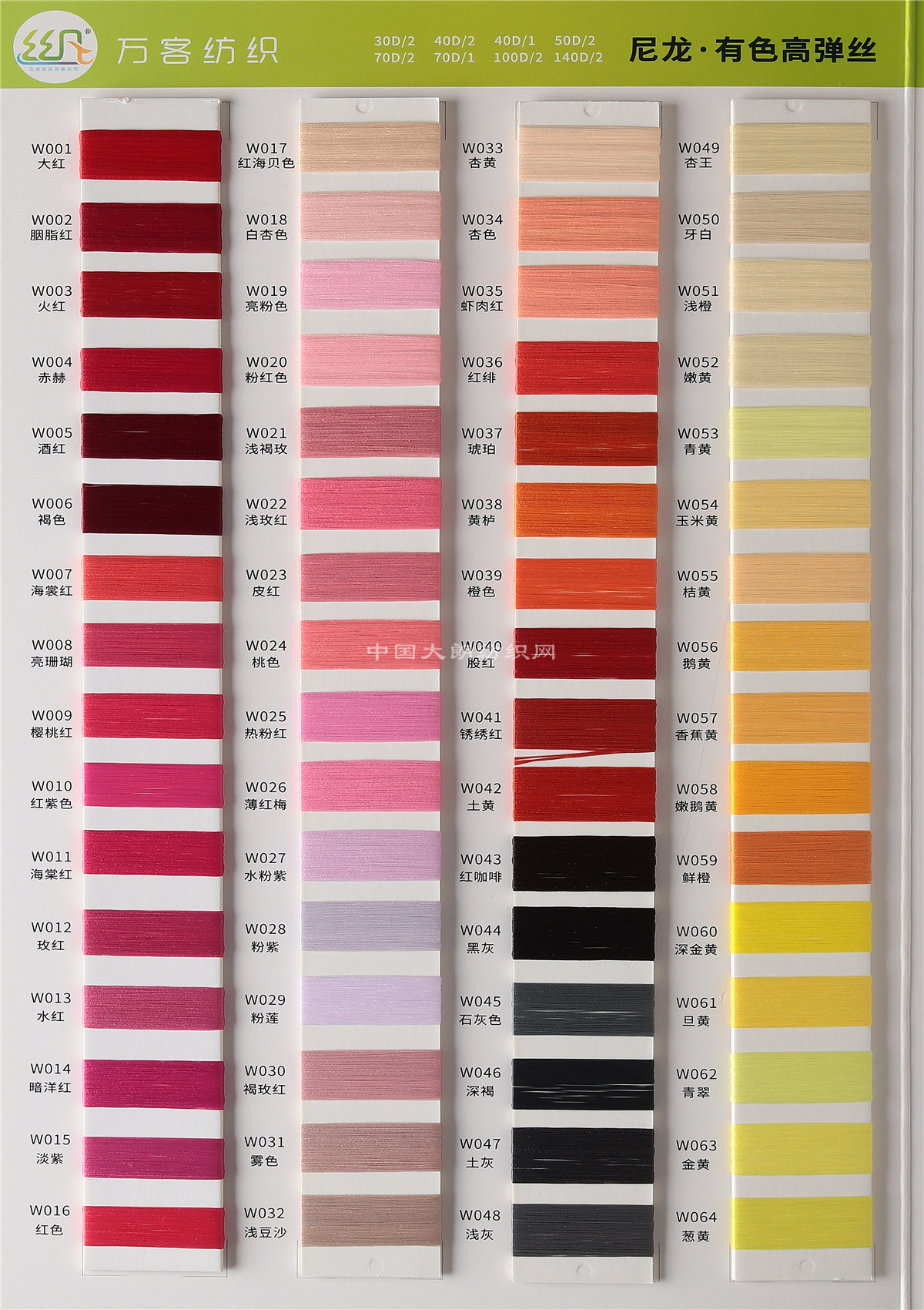 锦纶规格:30D/2 40D/2 40D/1 50D/2 70D/2 70D/1 100D/2 140D/2 拉架规格:1570 1870 2070