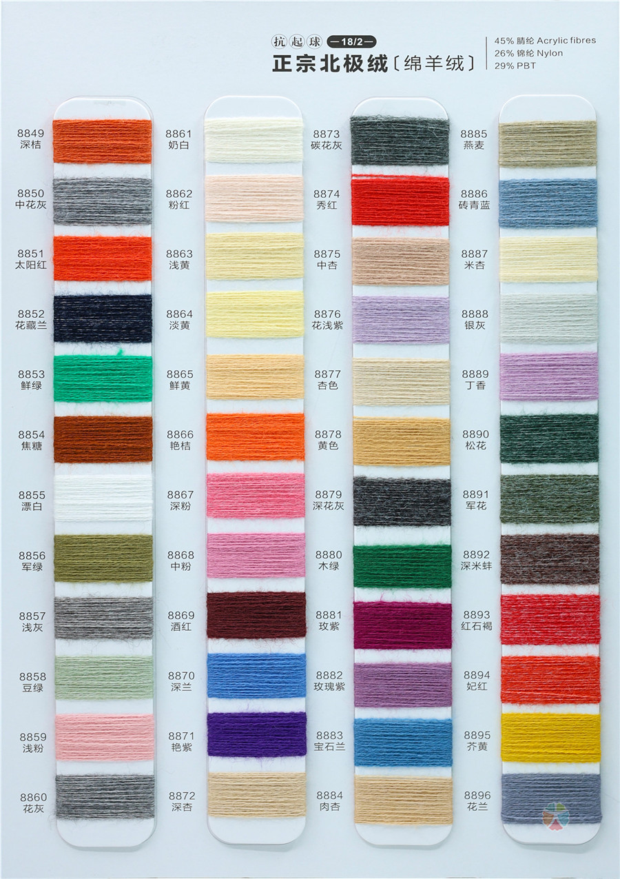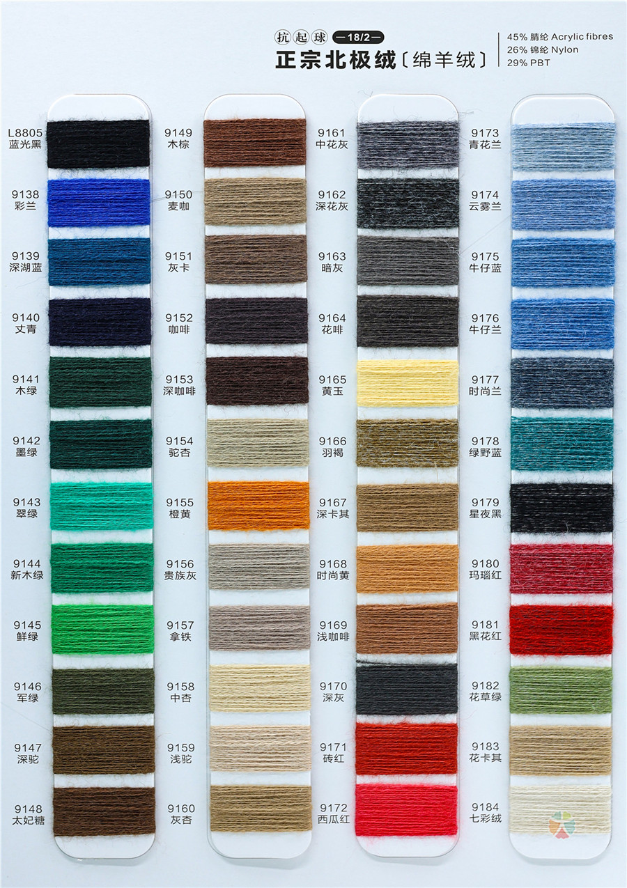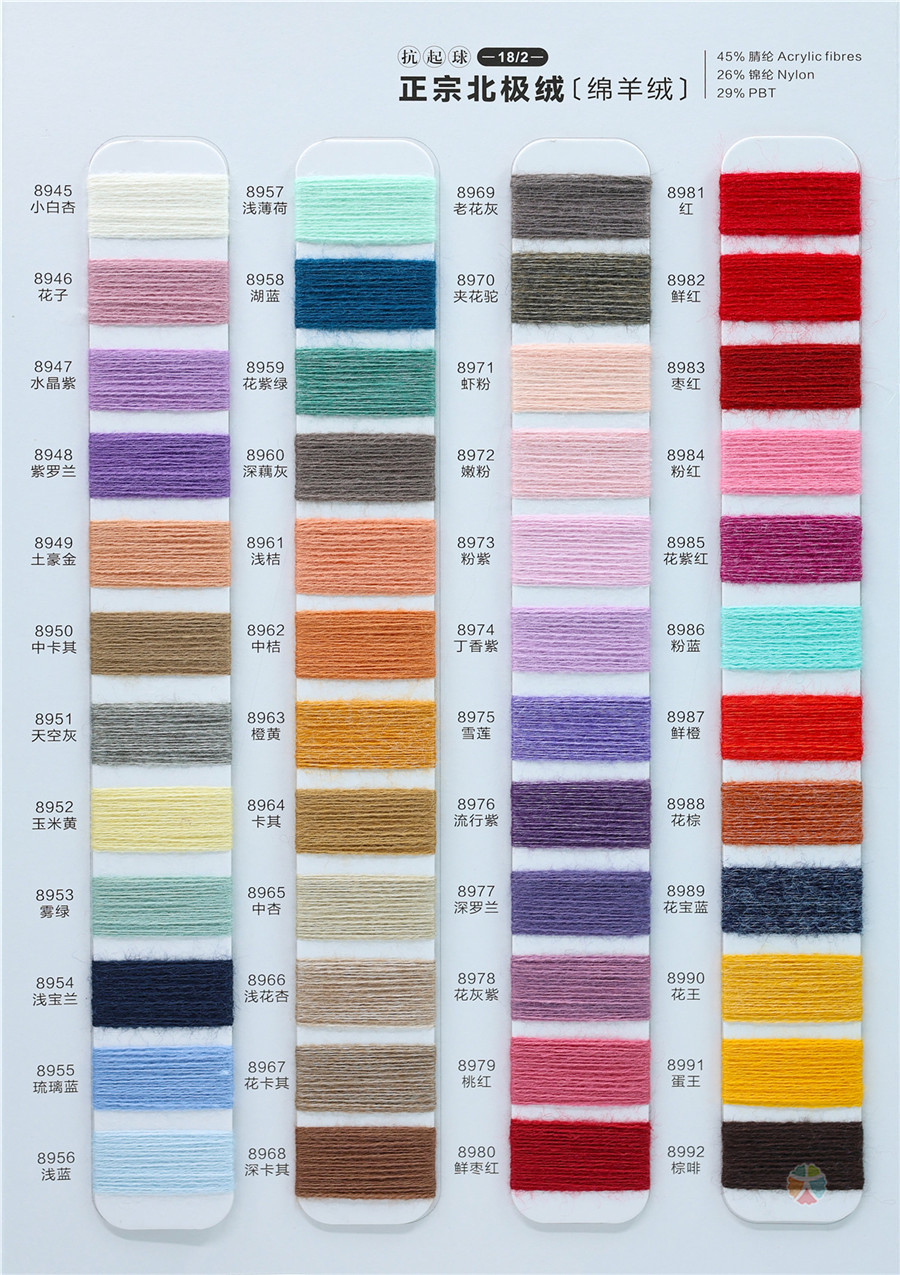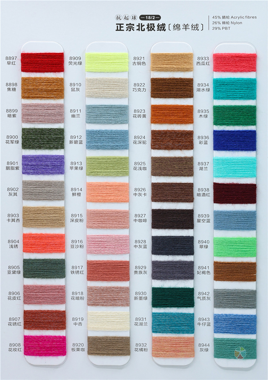纺染一体,批发生产锦纶有色高弹丝,抗起球北极绒(绵羊绒)兔绒包芯纱,高弹包芯纱,有色拉架