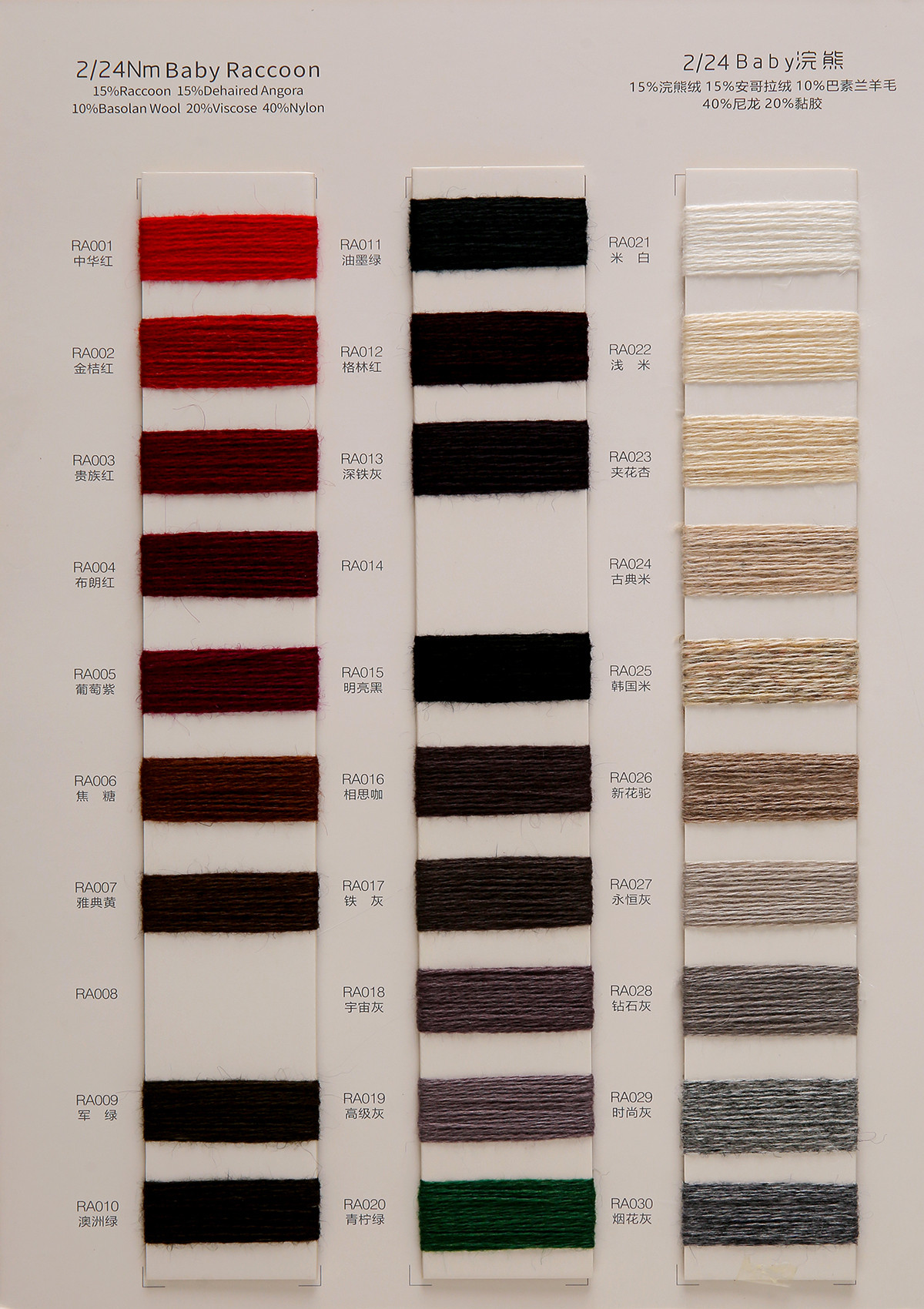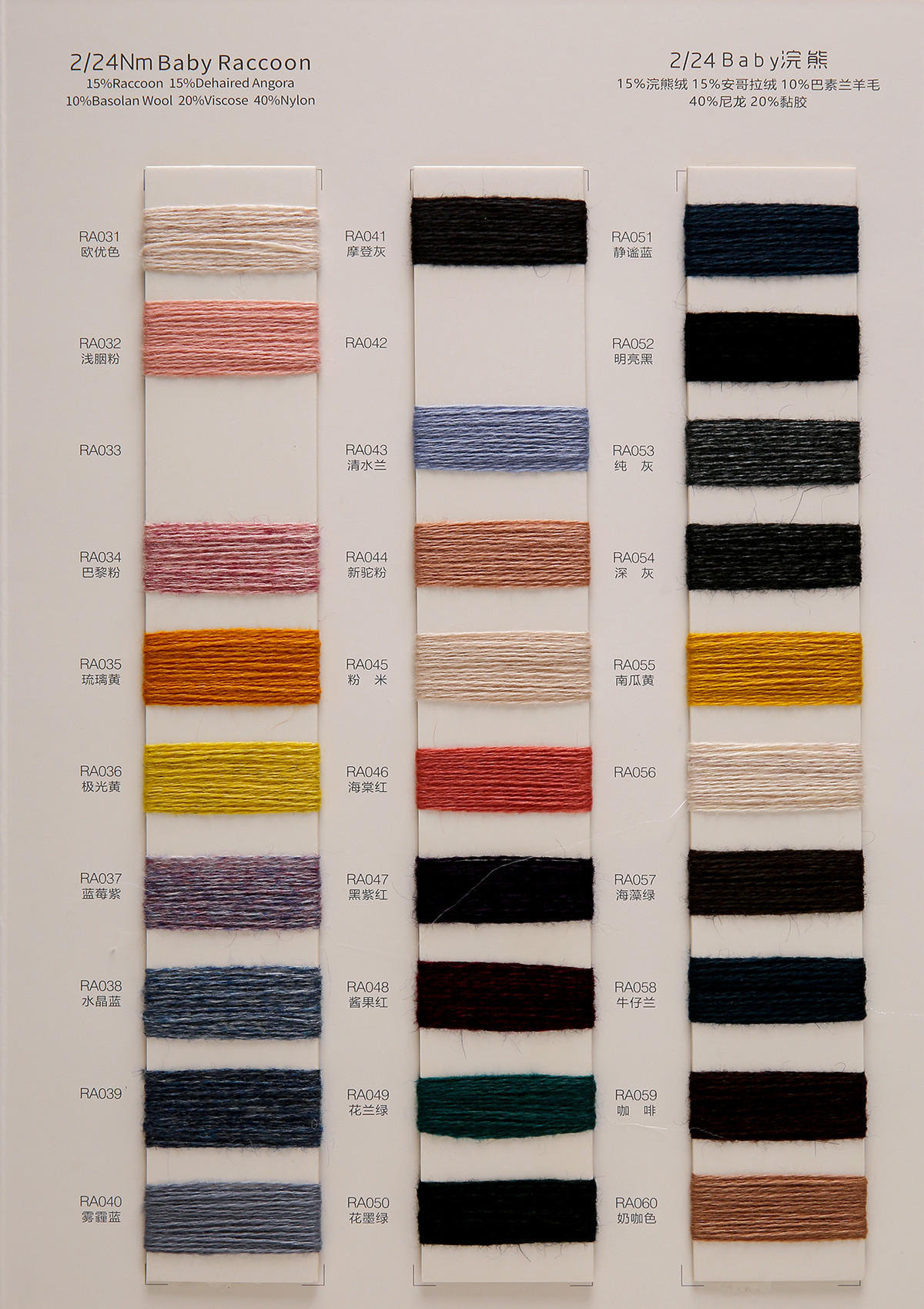 15%浣熊绒 15%安哥拉绒 10%巴素兰羊毛 40%尼龙 20%粘胶