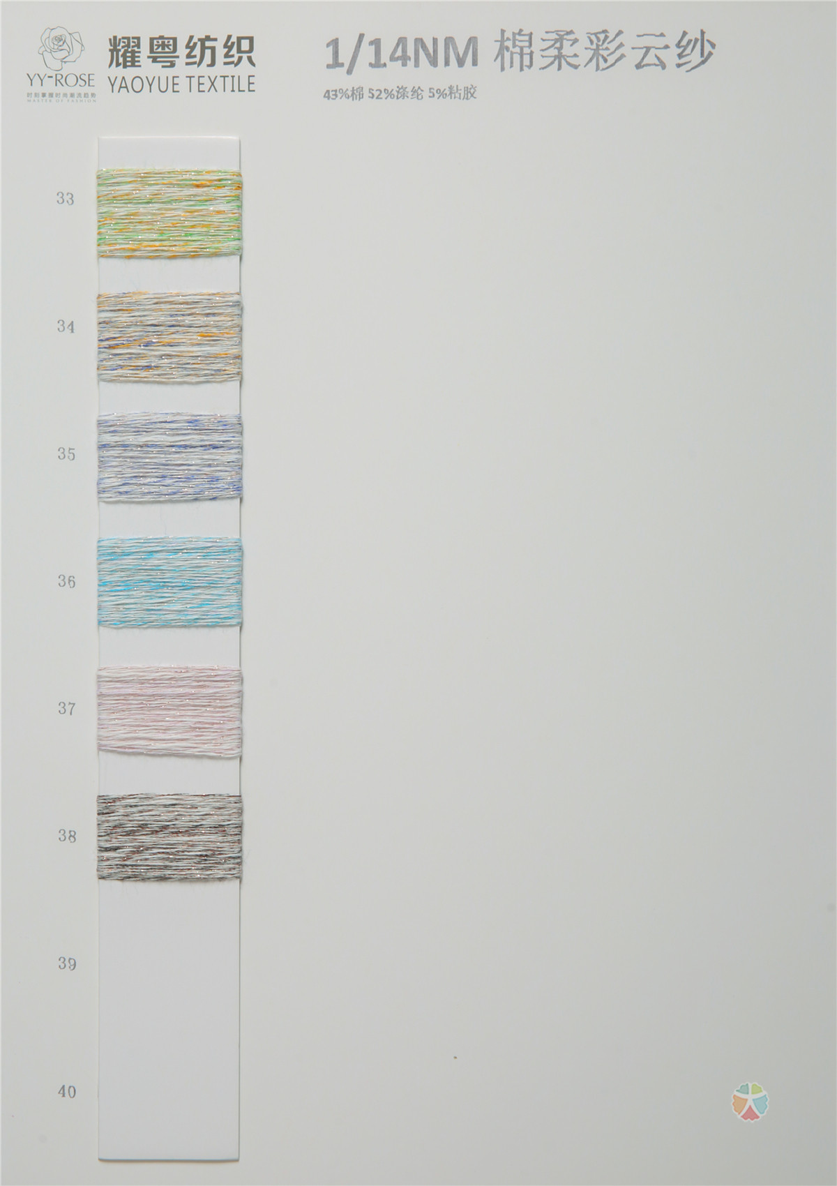 主营:混纺纱系列:进口和纸纱、膨体棉羊毛、超爽莱赛米纳丝、天丝醋酸丝;抗菌系列:艾草抗菌纱、抗菌丝光羊毛混纺、抗菌芦荟艾草羊毛、弹力抗菌澳绵绒