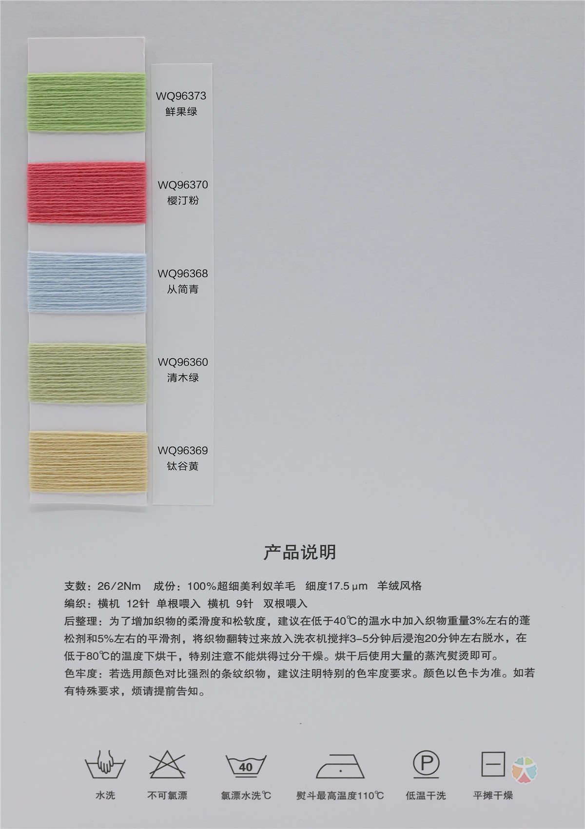 主营:26支/2 30/70山羊绒、26支/2 10/90山羊绒、26/2走锭全羊毛、26/2藏驼绒、24/2浣熊绒A、24/2浣熊绒B、24/2小羊绒、6.5/1雪驼绒、25/2走锭羊毛绒、36/2澳洲阳光绒、25/2走锭澳羊毛、68/3春夏产品天丝羊毛