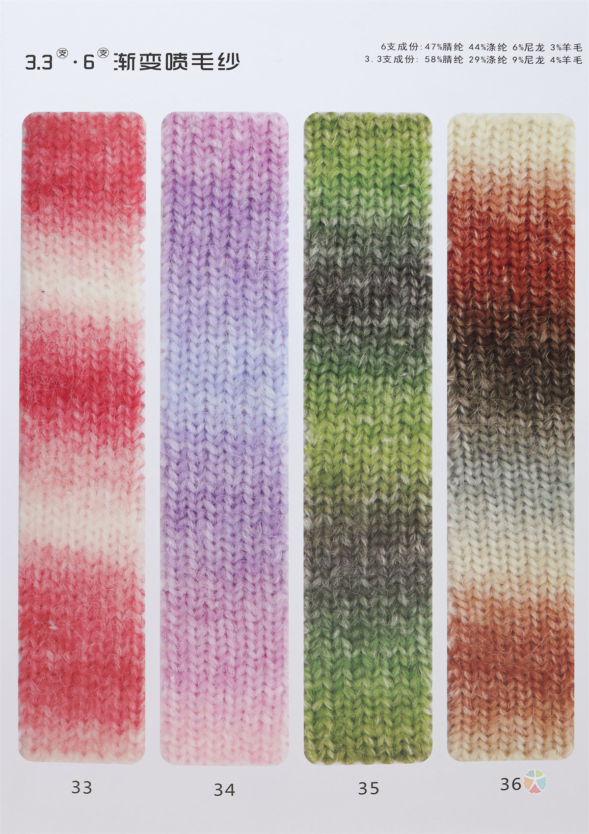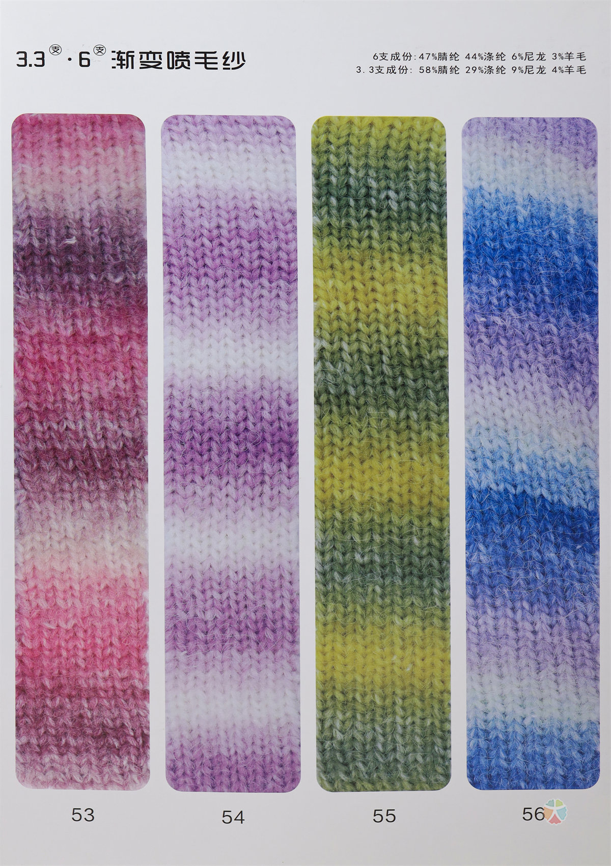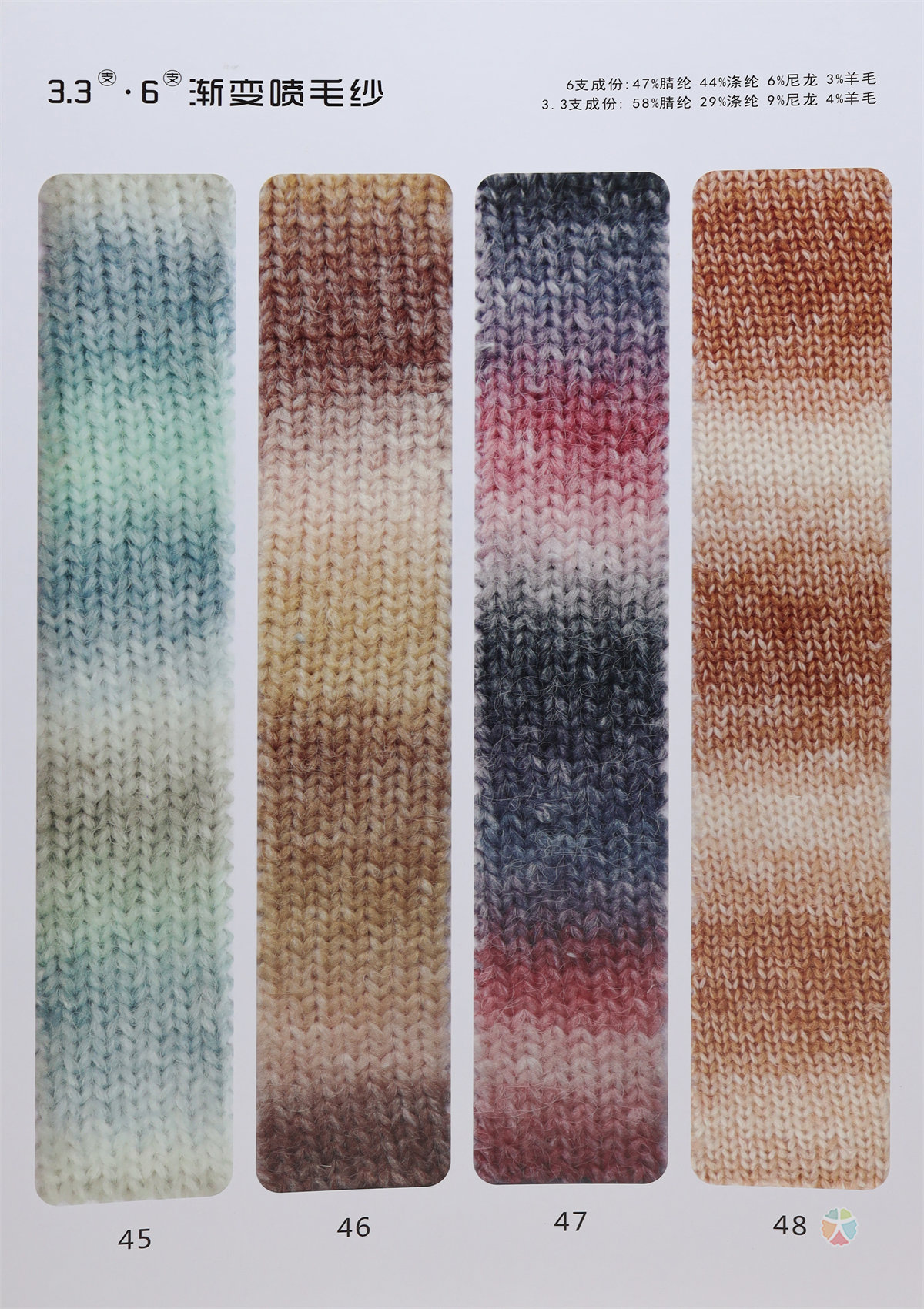 58%腈纶 29%涤纶 9%尼龙 4%羊毛 /47%腈纶 44%涤纶 6%尼龙 3%羊毛
