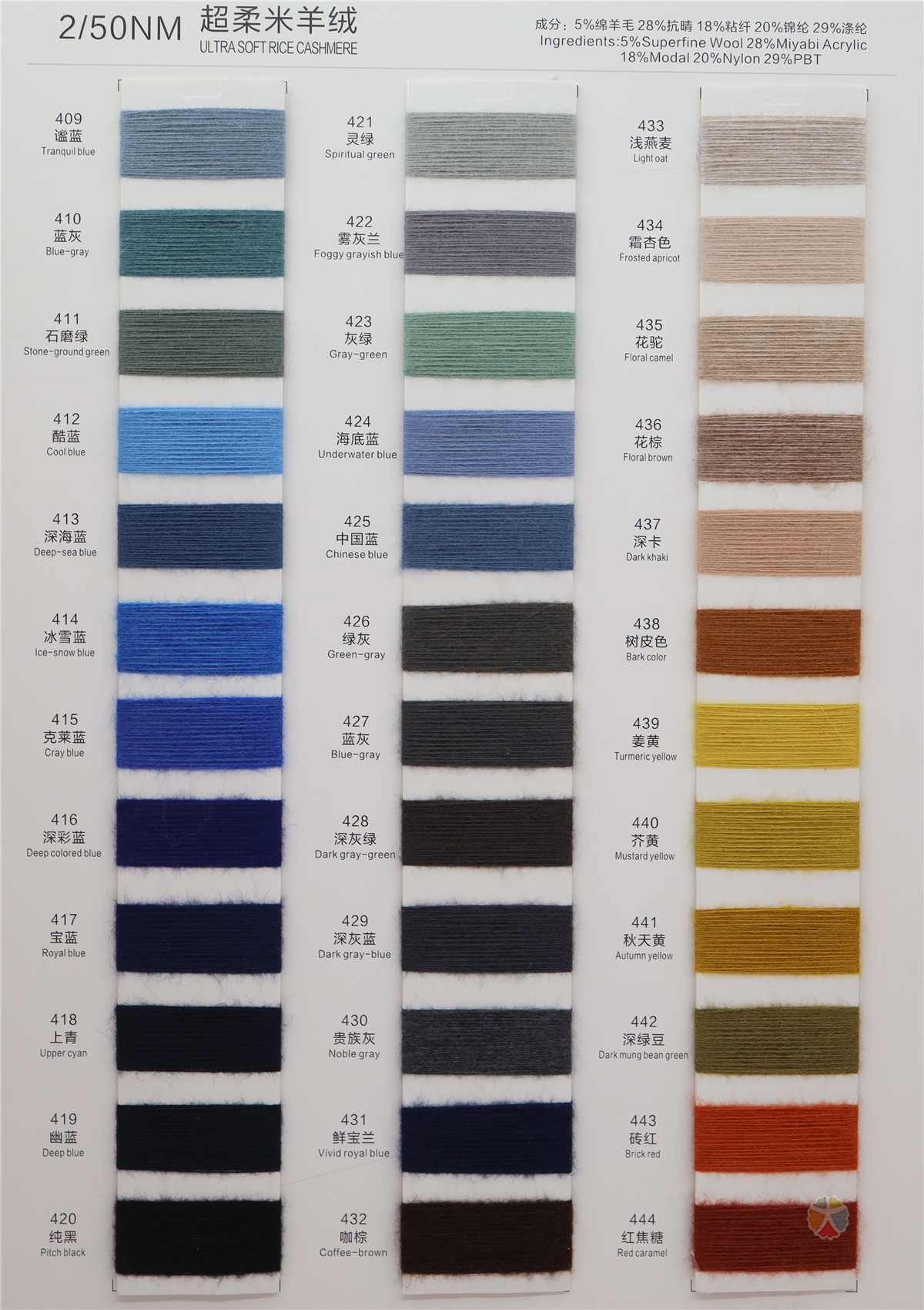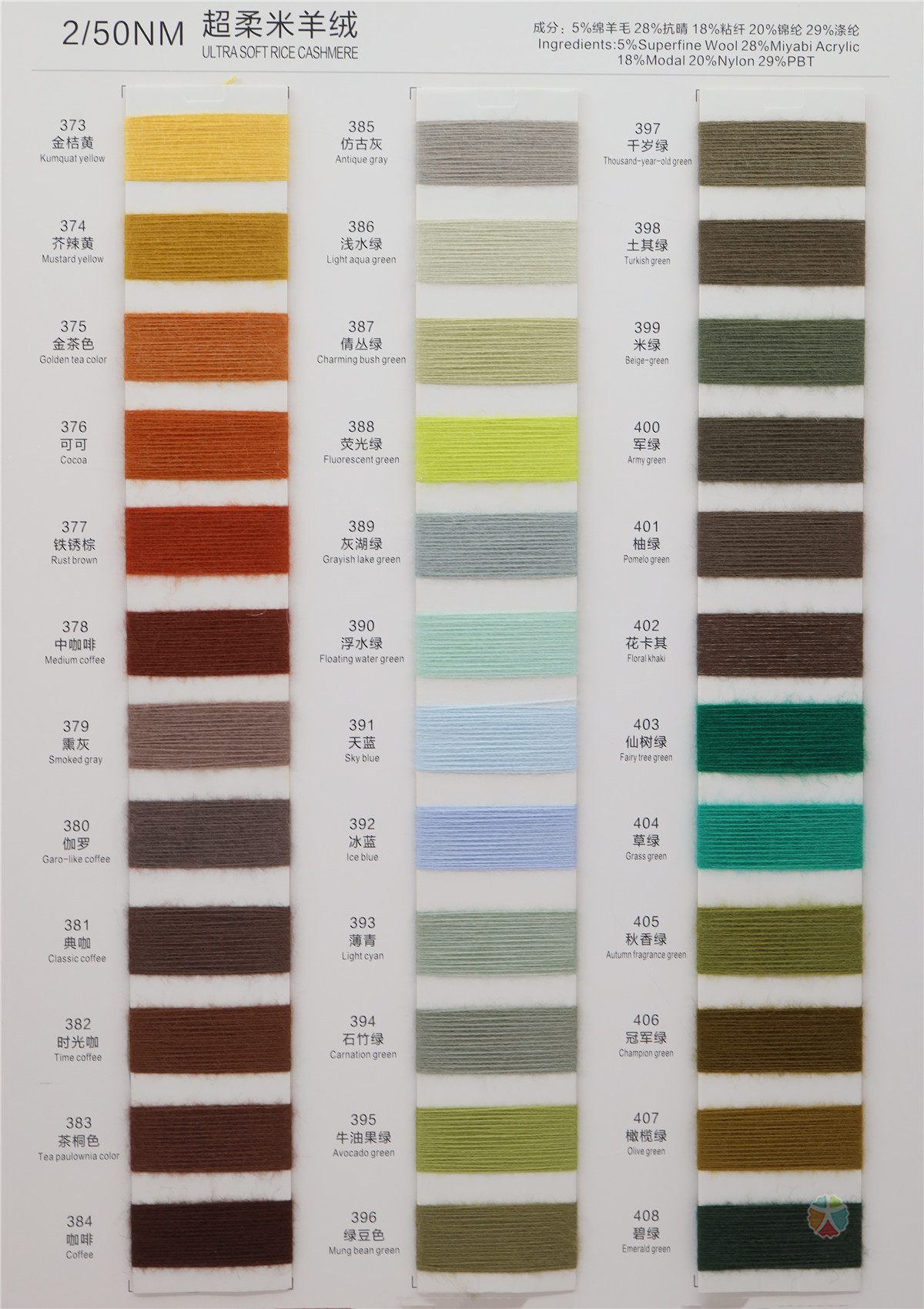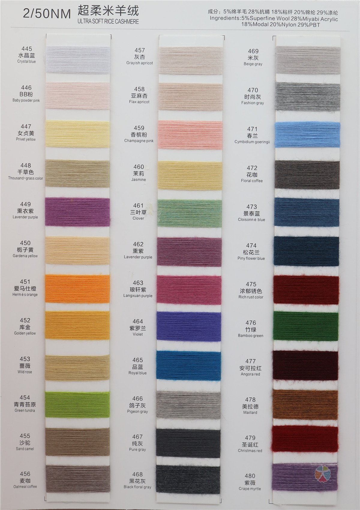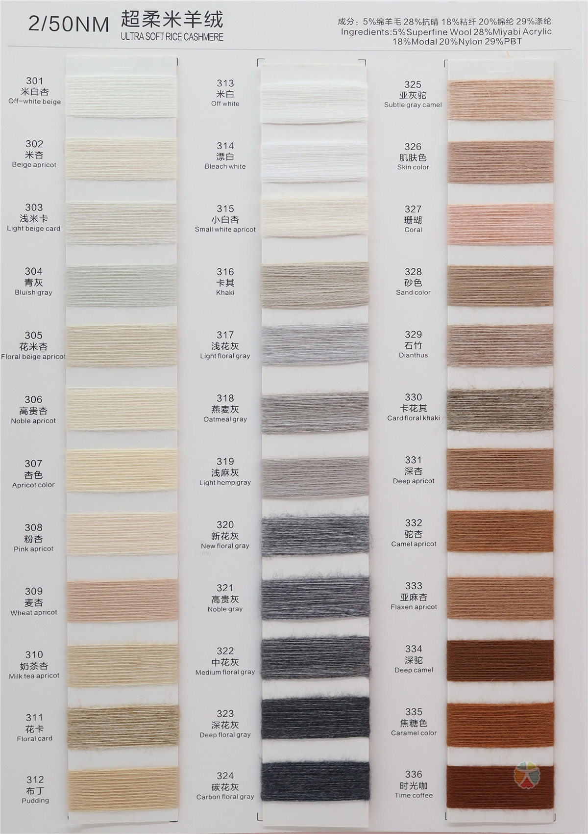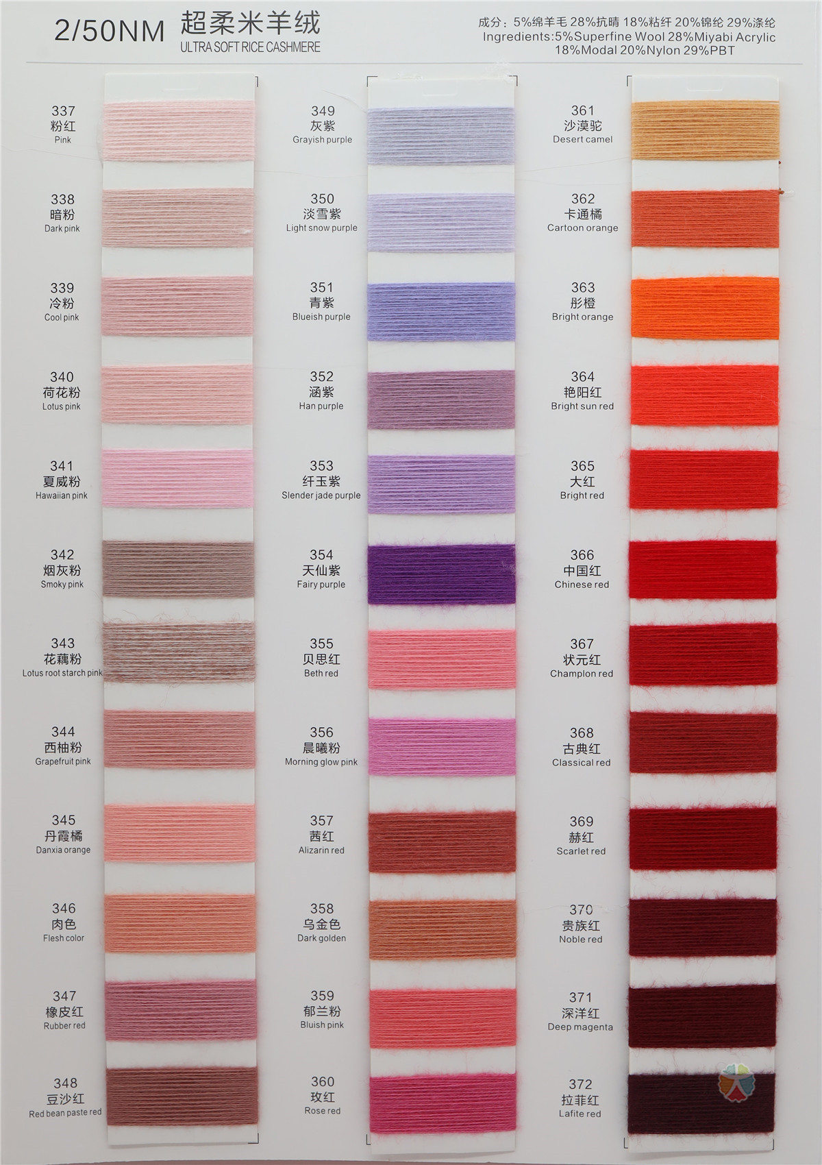 5%Wool(绵羊毛) 28%Acrylic(抗晴) 18%Viscose(粘纤) 20%Nylon(锦纶) 29%Polyester(涤纶)