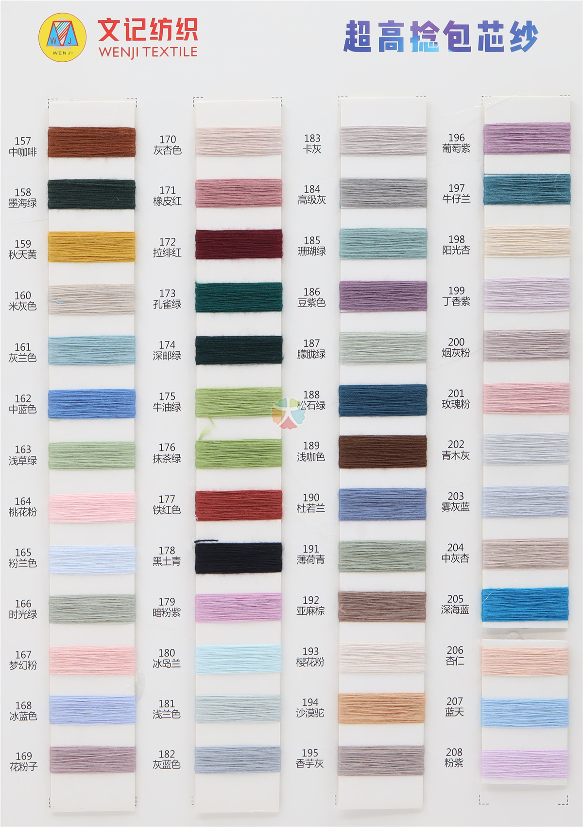 无结包芯纱、安哥拉纤绒纱、20支幻彩绒、超高捻包芯纱、