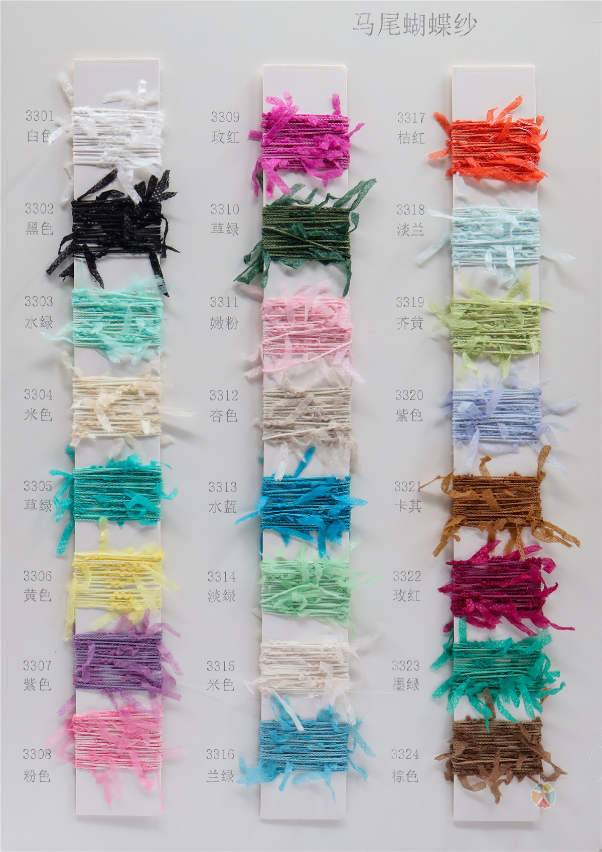 主营:专业新型花式纱:10支亮片彩貂,4支泰迪绒,6.5支豆豆羽毛纱,小香风蝴蝶纱,6支豆豆喷毛纱,3支加密羽毛纱,4.8支羊毛圈圈,七彩梯田纱,18支小尼绒,8公分仿皮革,18支珠片北极绒,9支长毛羊驼,5支小香风,马尾蝴蝶纱,跳舞纱,空心带