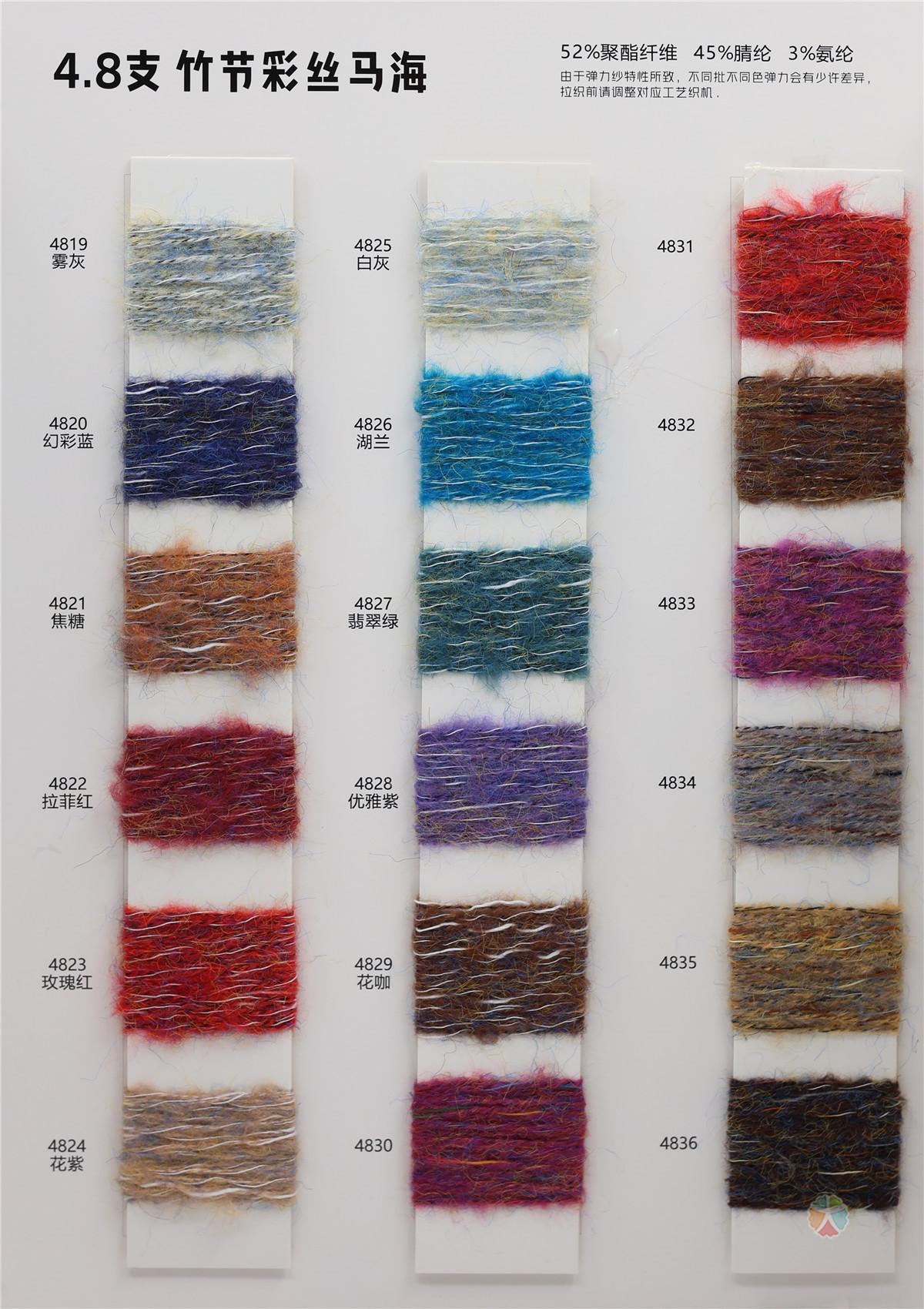 52%聚酯纤维 45%腈纶 3%氨纶