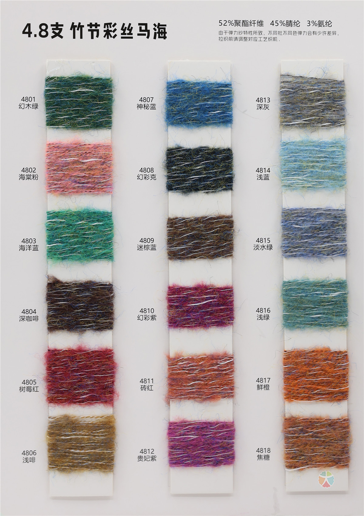 主营:6支彩丝弹力马海、6支弹力幻彩圈圈纱、26/1NM亮丽天鹅绒、12针哑光雪尼尔、40NM/1超爽棉、6支10支15支米卡绒/雪尼尔、18NM/1柔软小尼绒