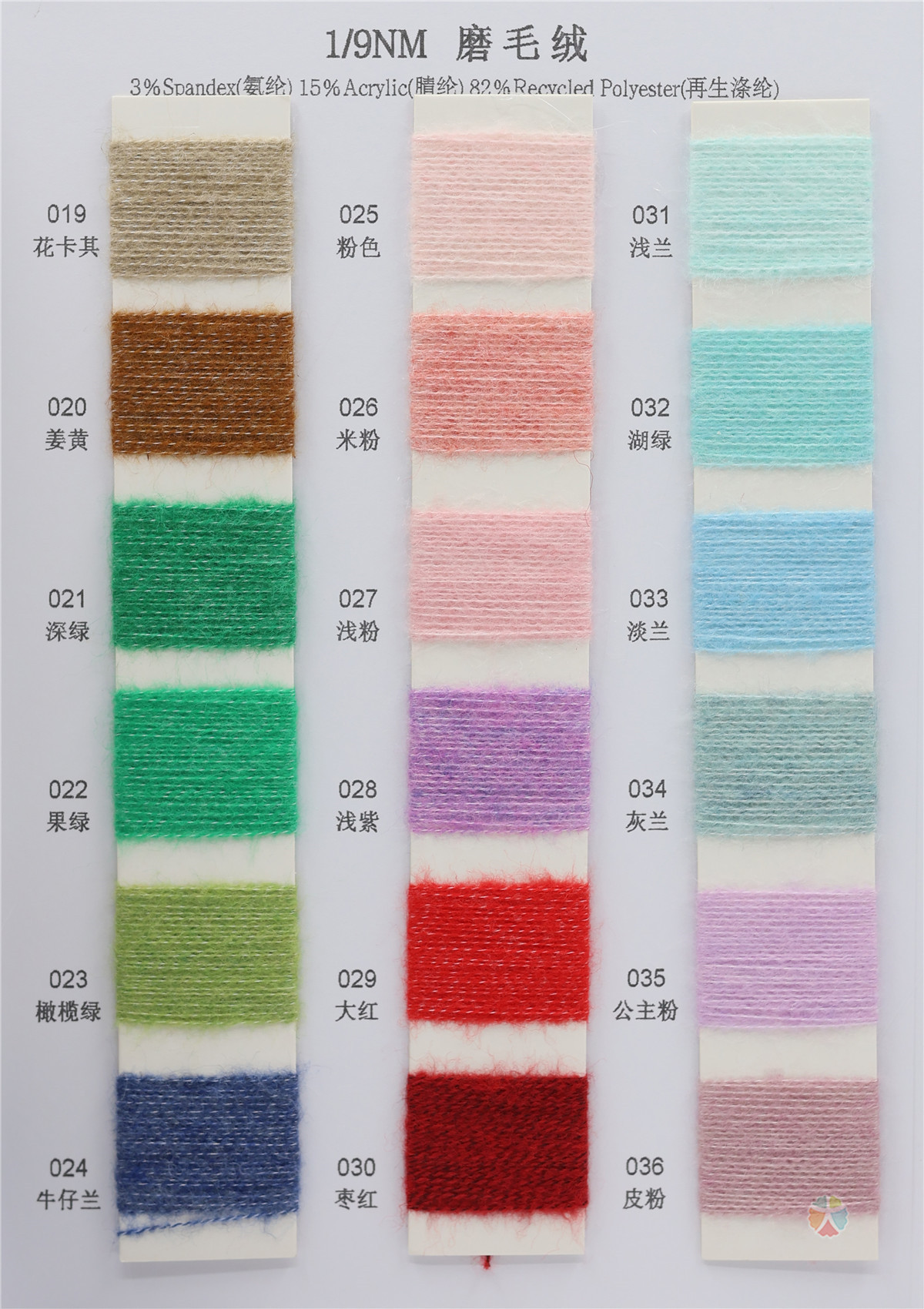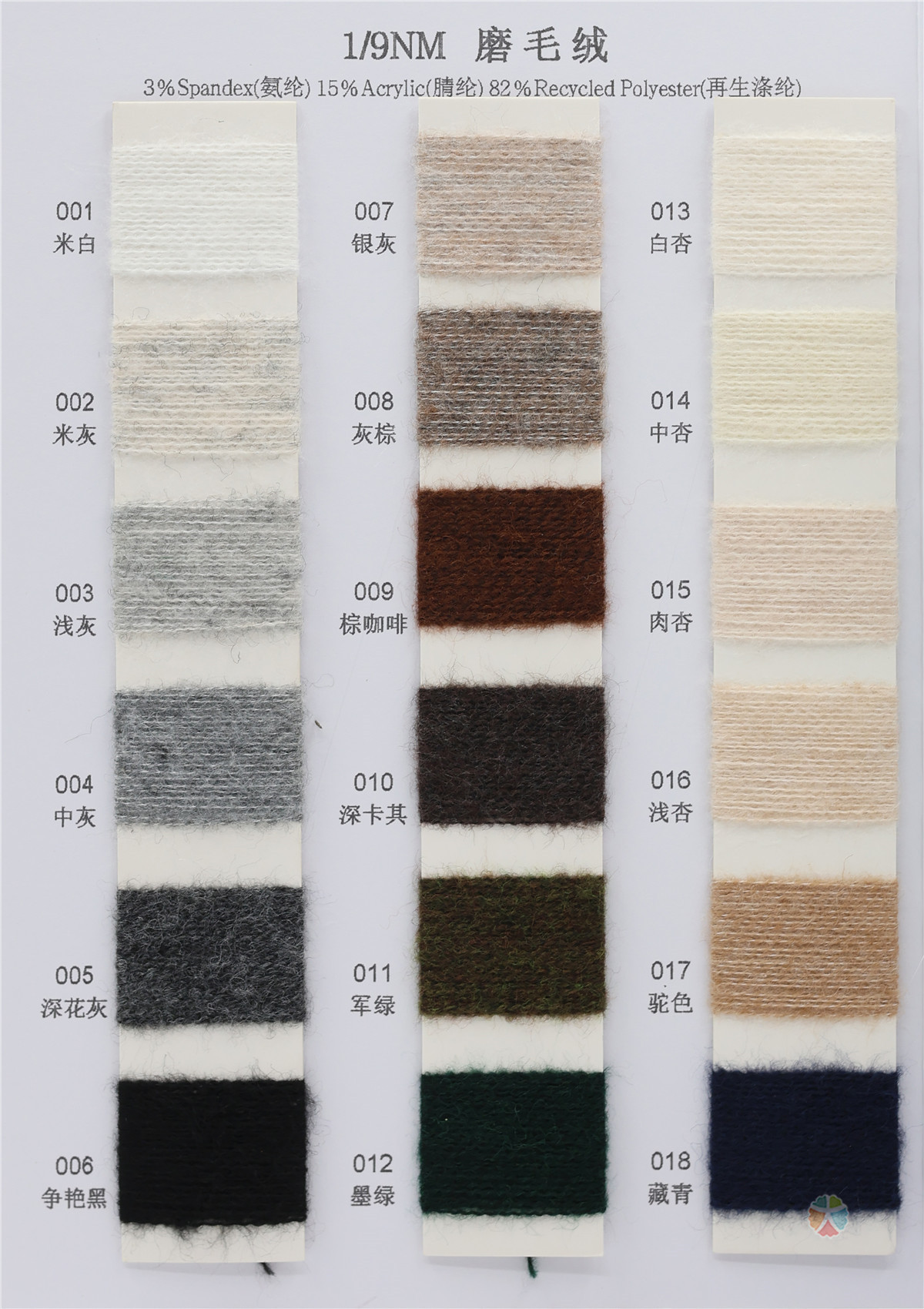 3%Spandex(氨纶) 15%Acrylic(腈纶) 82%Recycled Polyester(再生涤纶)