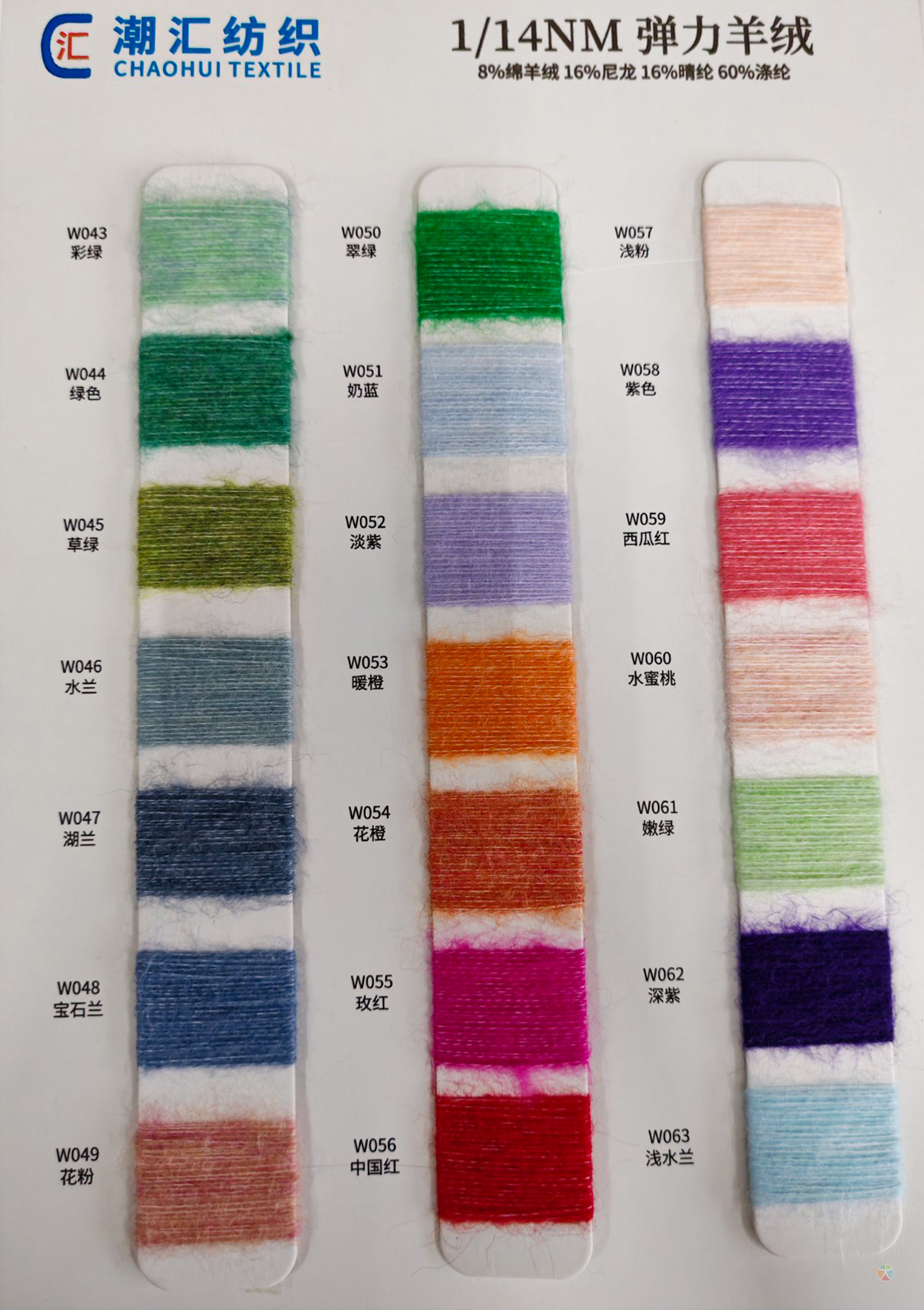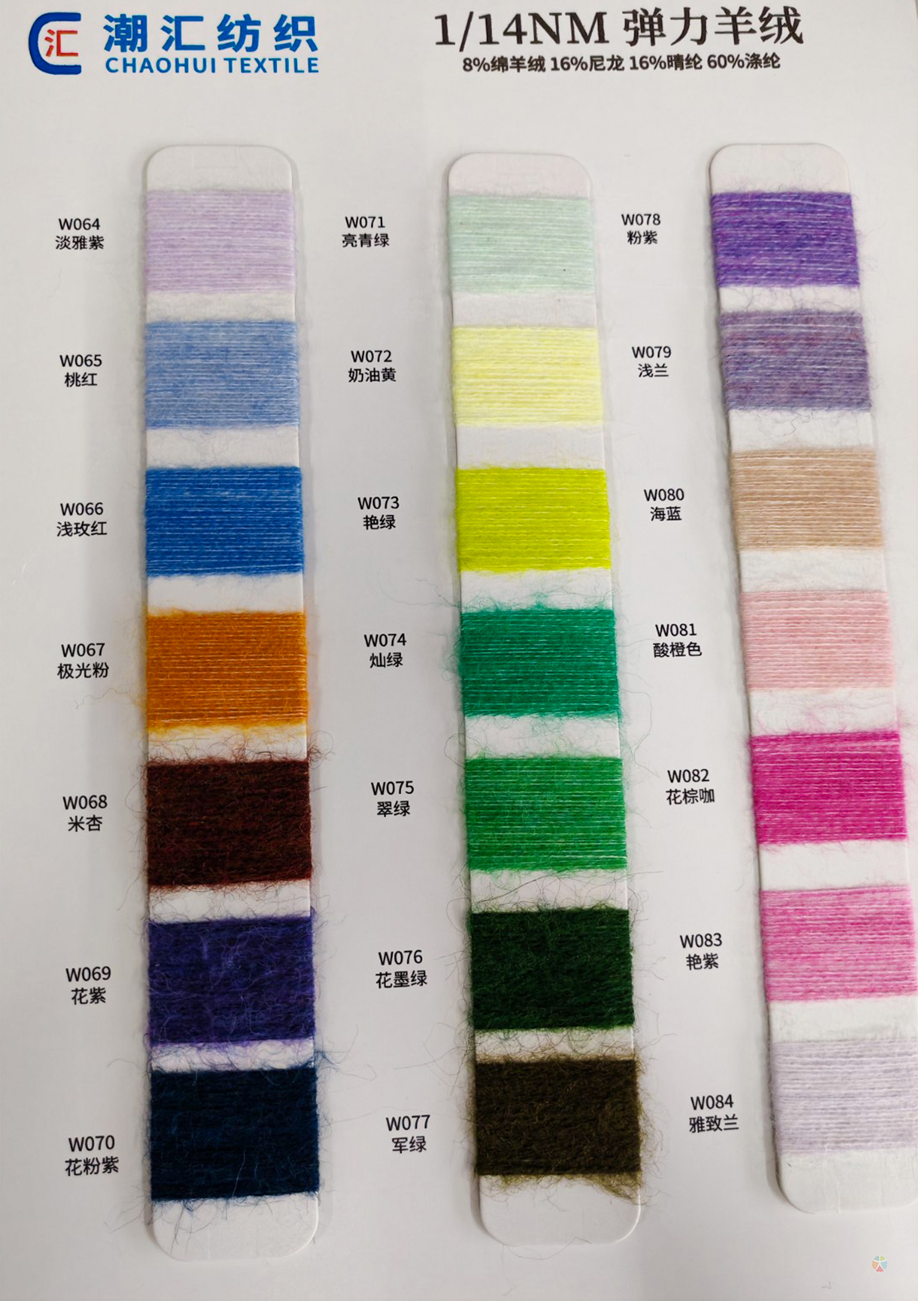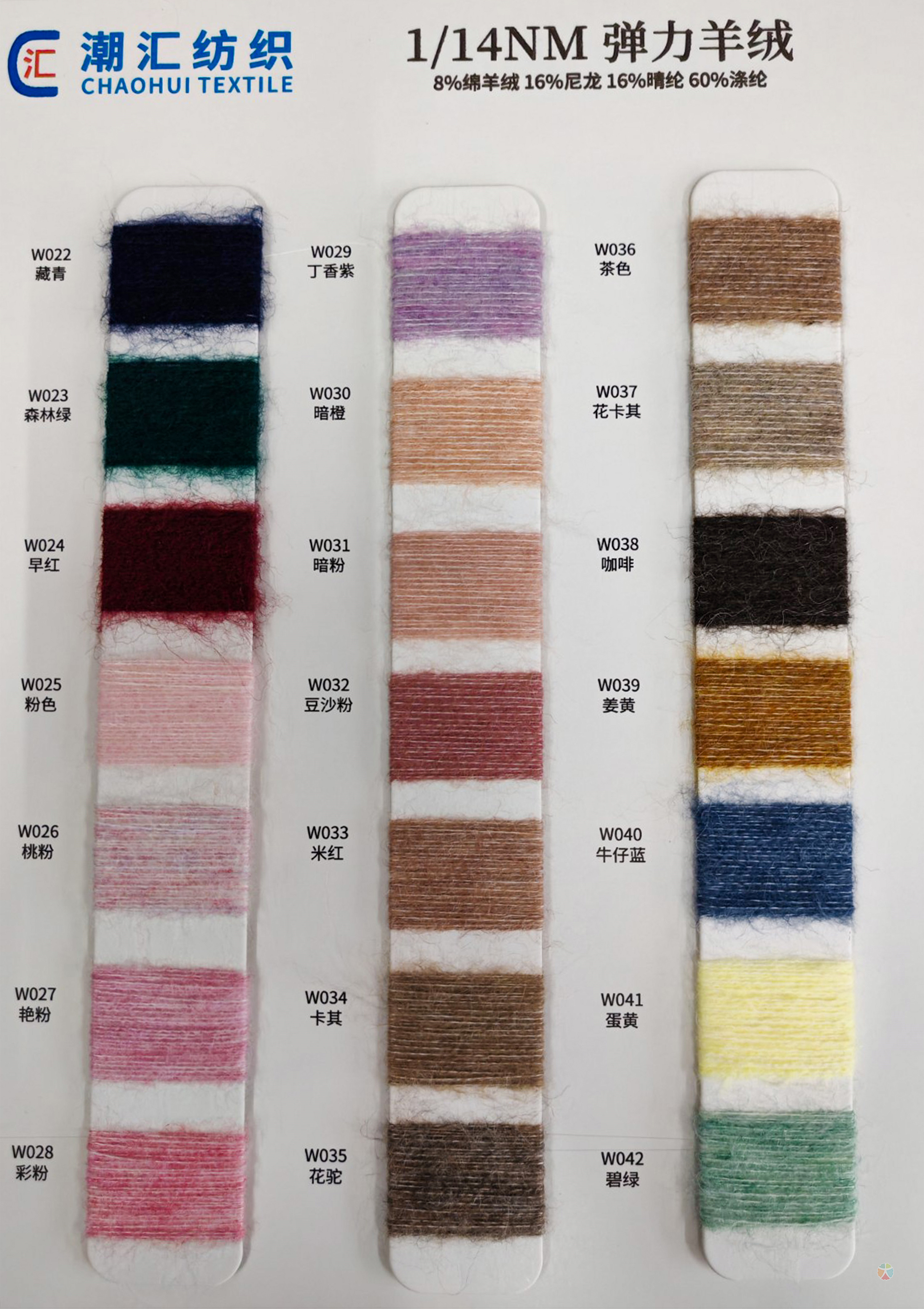 主营:潮汇纺织有限公司:包芯纱系列,短貂.银貂.黄金貂.长毛水貂绒.兔毛兔绒系列,羊毛羊绒系列,马海毛系列,空心带子纱系列,冰岛毛,圈圈纱,闪光纱,小肚纱,大肚纱,斜毛纱,单面绒,双面绒,竹节纱,彩点纱,水结珠,米粉纱,冰曲,仿貂绒,蜈蚣纱,羽毛纱,渐变纱,猫毛纱,丝绒,雪花点,香肠纱,松树纱