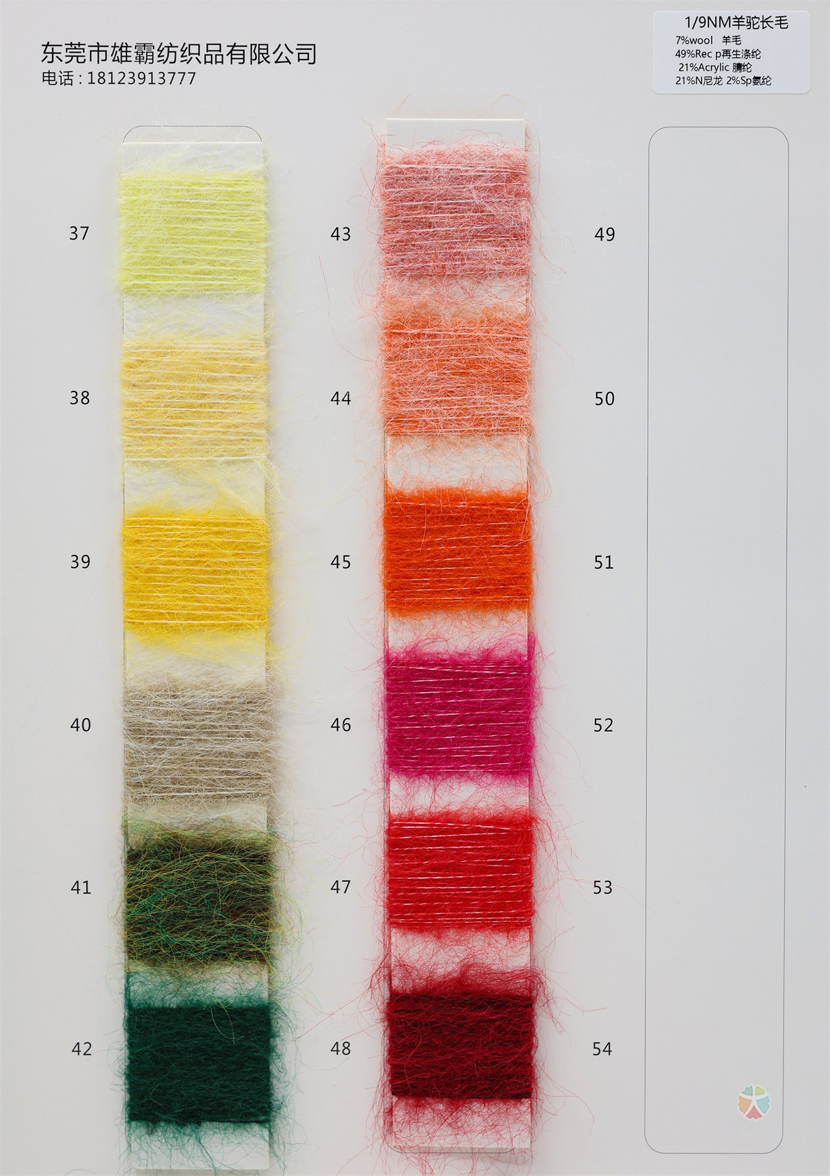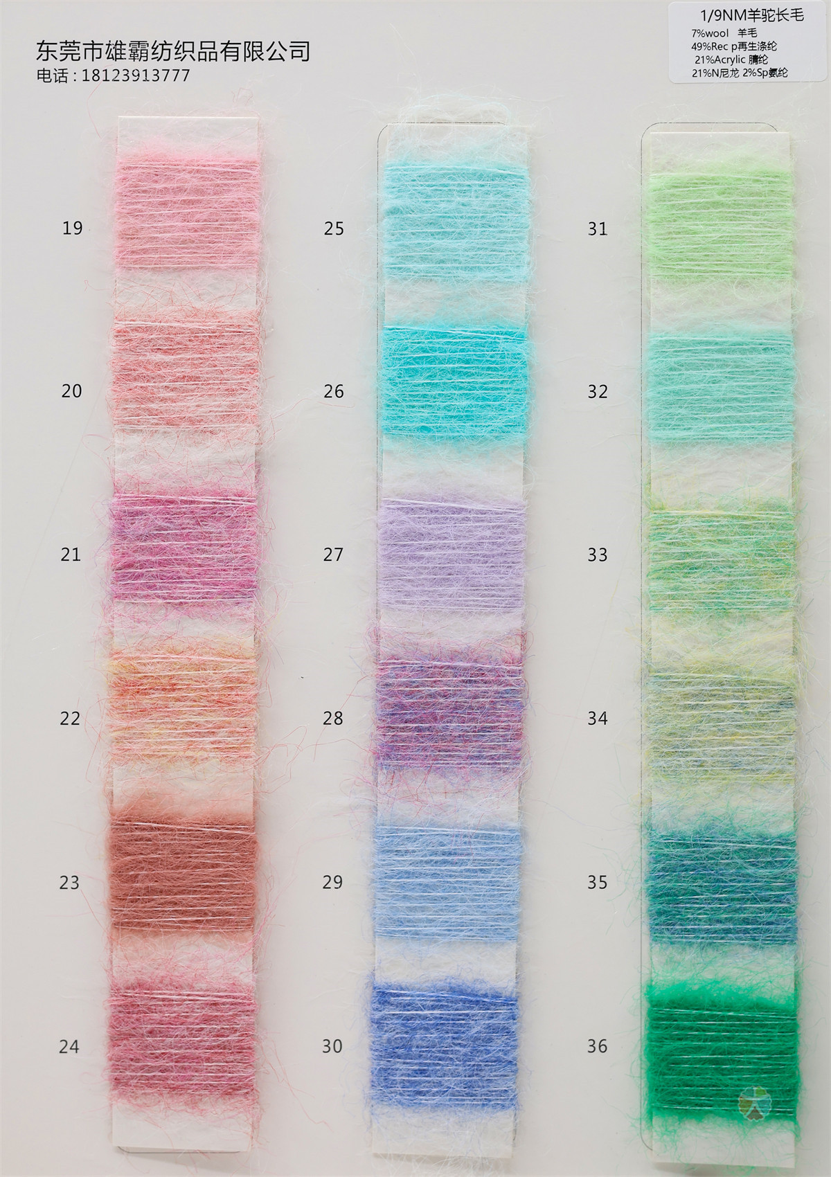 7%羊毛 49%再生涤纶 21%腈纶 21%尼龙 2%氨纶
