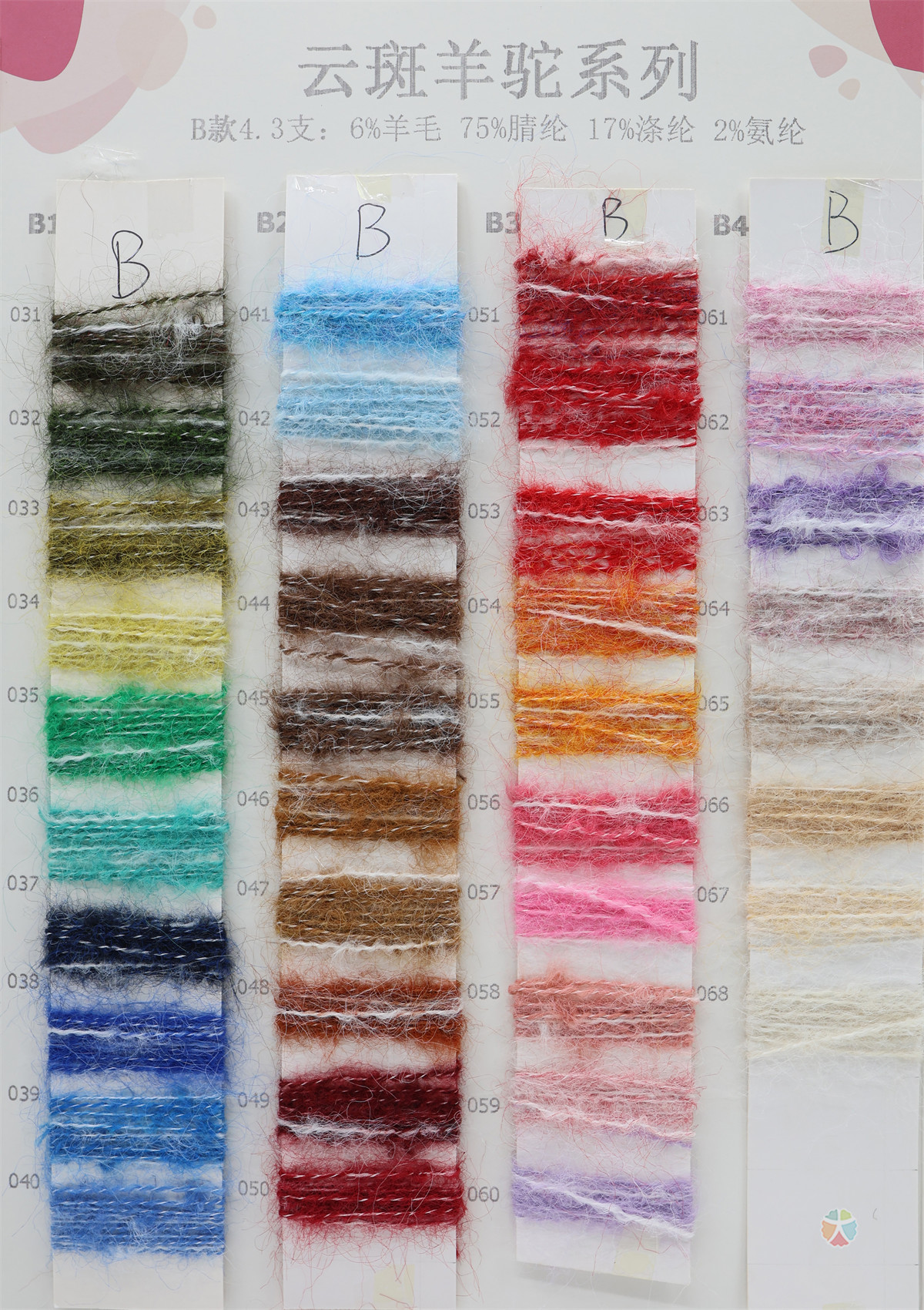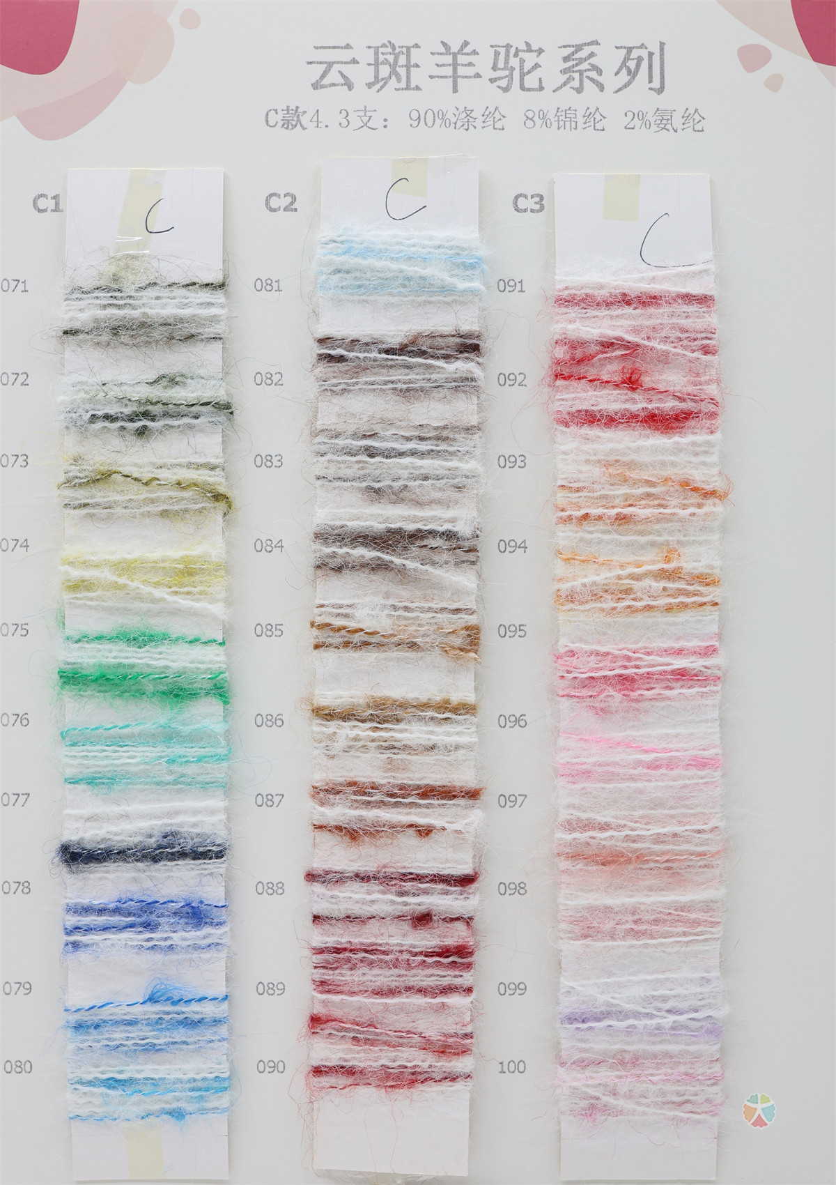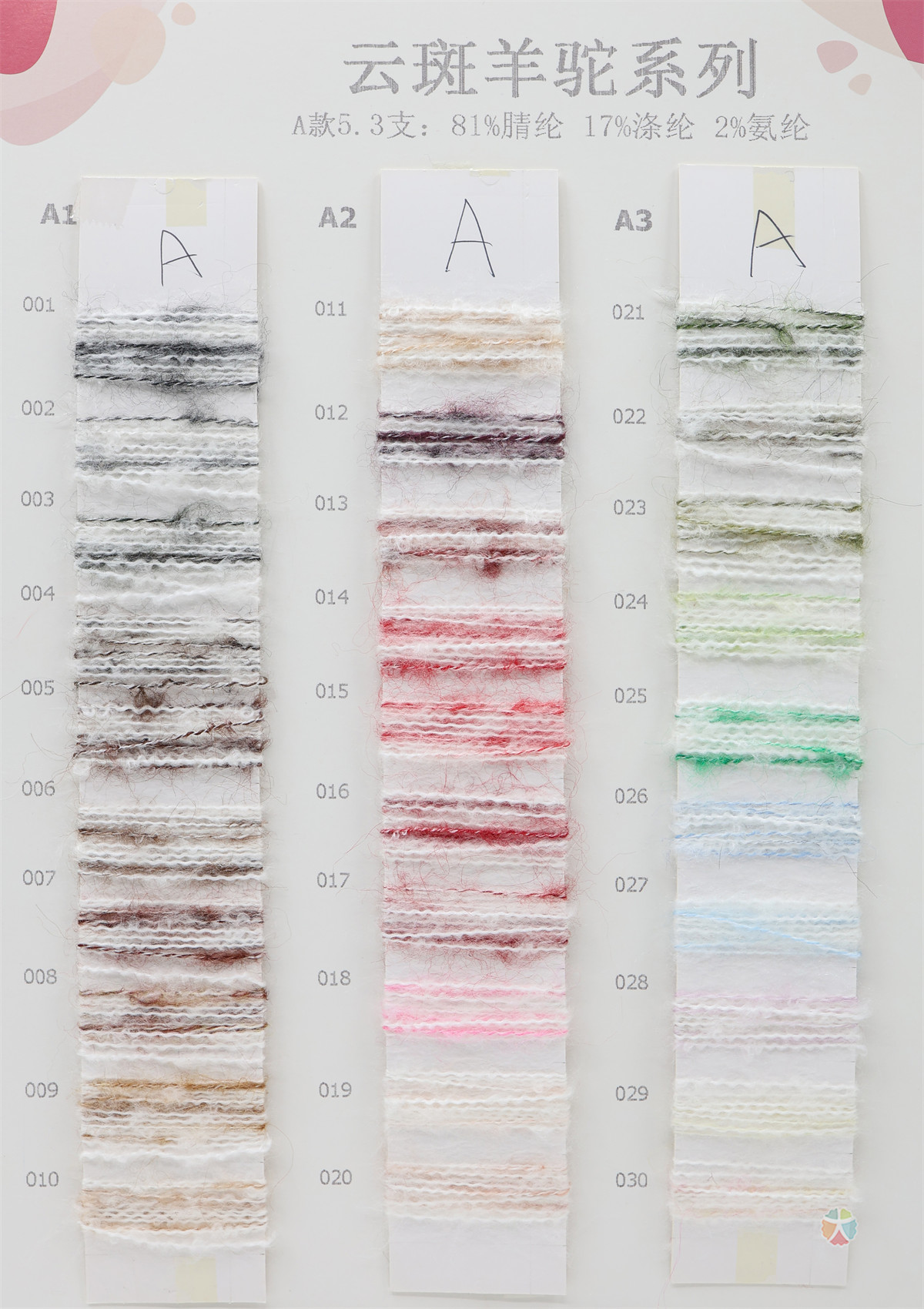 81%腈纶 17%涤纶 2%氨纶/6%羊毛 75%腈纶 17%涤纶 2%氨纶/90%涤纶 8%锦纶 2%氨纶