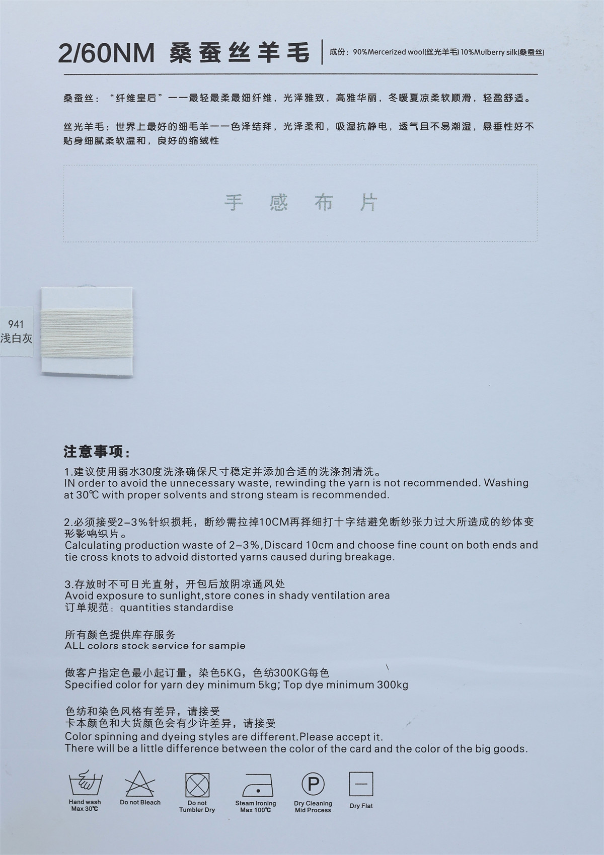 90%丝光羊毛 10%桑蚕丝