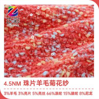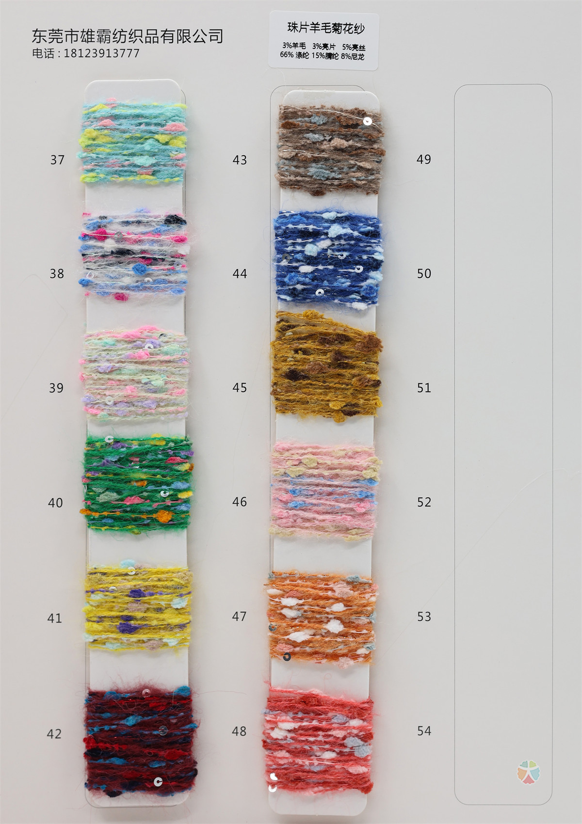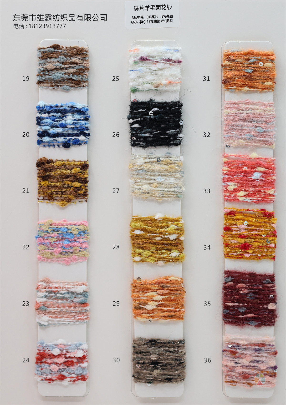3%羊毛 3%亮片 5%亮丝 66%涤纶 15%腈纶 8%尼龙