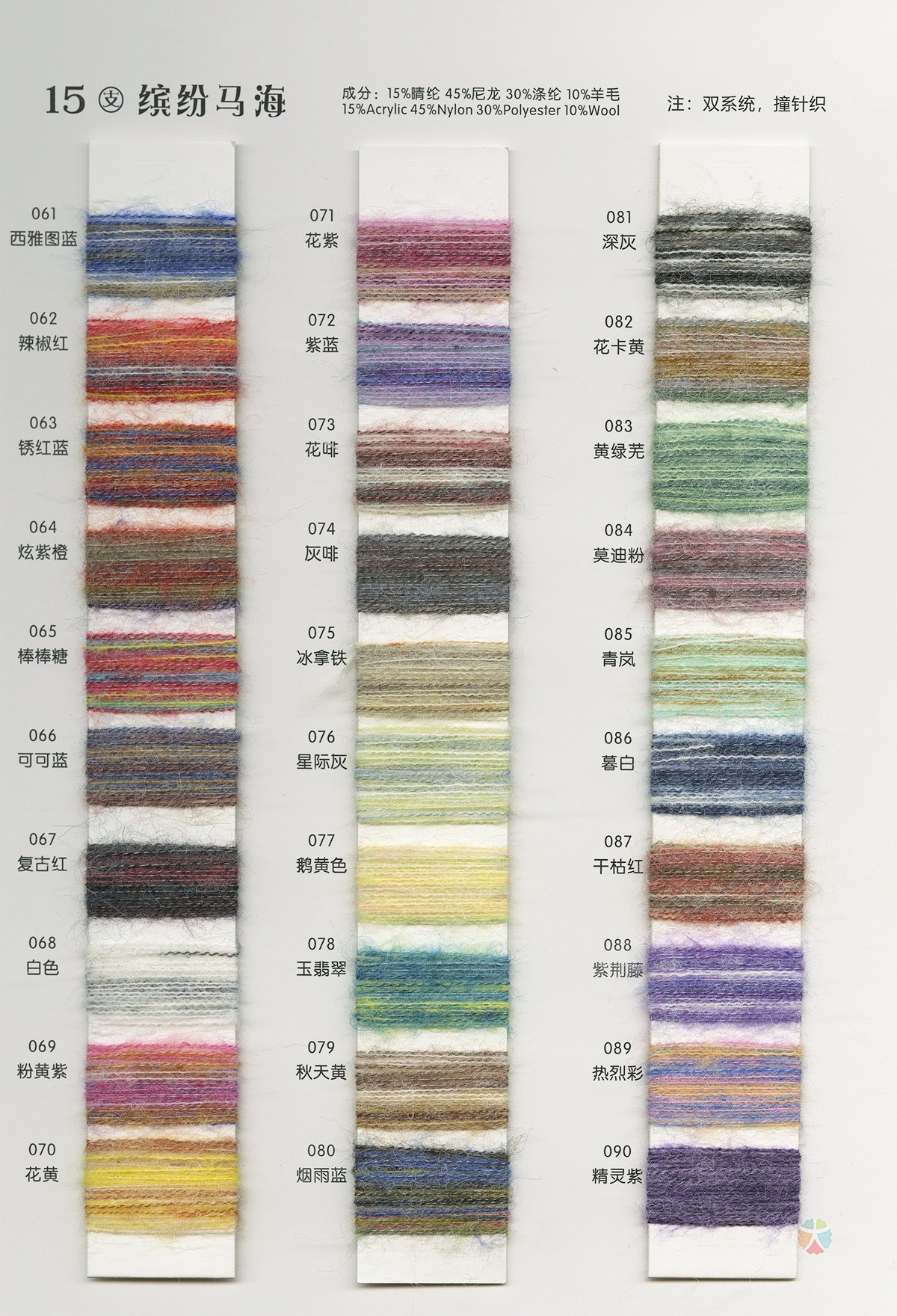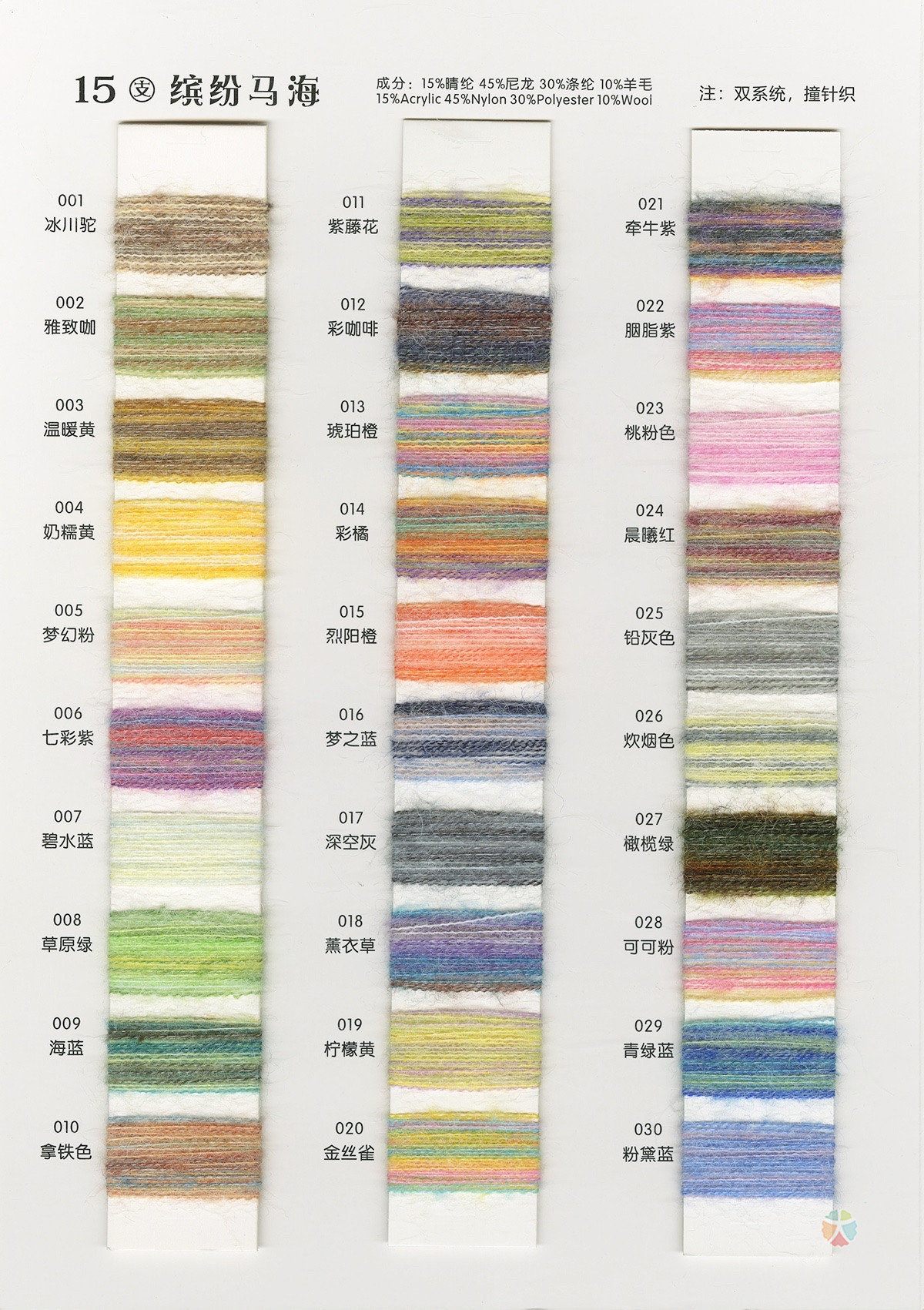 15%晴纶 45%尼龙 30%涤纶 10%羊毛