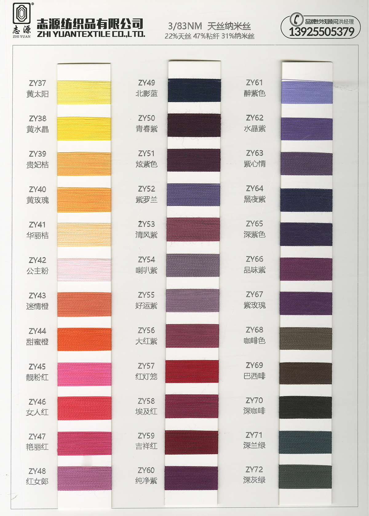 主营:棉纺,麻纺,粘胶,天丝,晴纶,尼龙, 羊毛,涤纶,锦纶,羊绒,兔毛,兔绒,弹力,蚕丝,混纺,化纤,色纺,粗纺,精纺,竹节,羊仔毛,木代尔,竹纤维,金银线,半精纺,花式特种纱