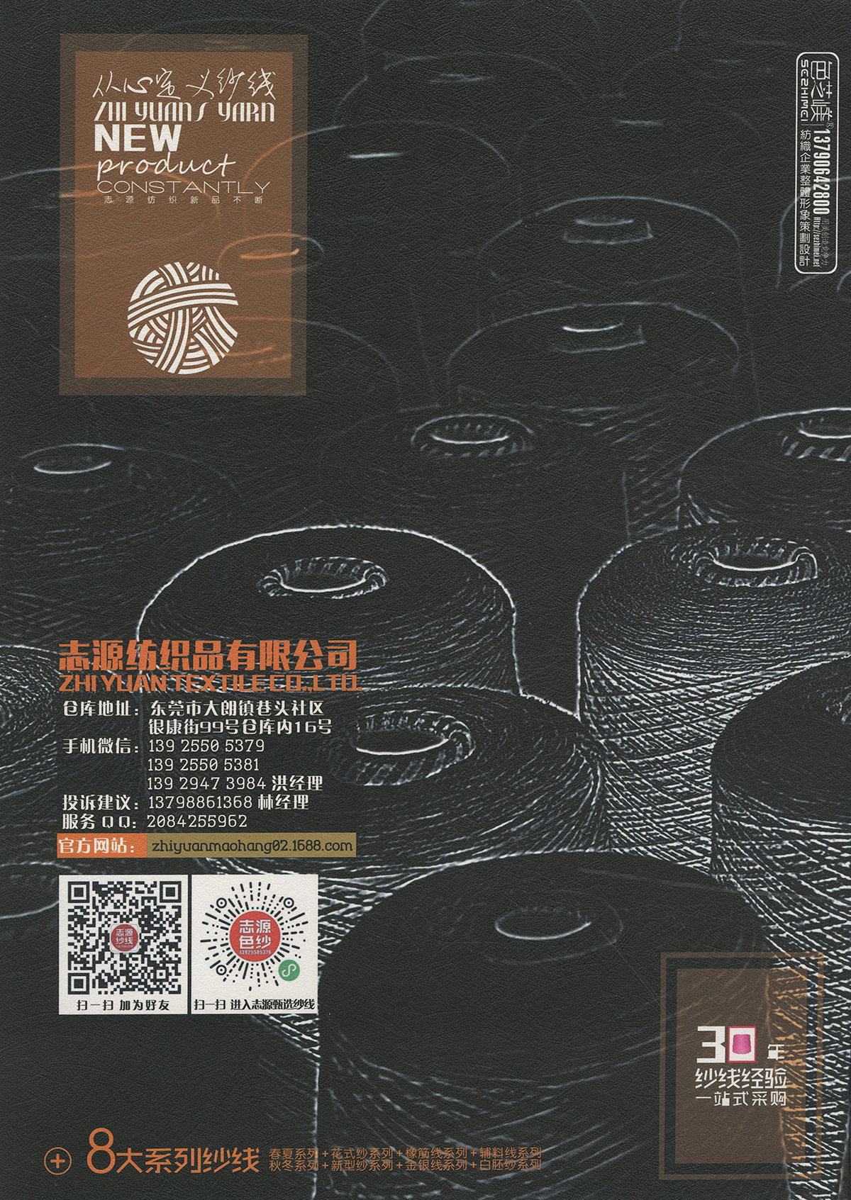 主营:棉纺,麻纺,粘胶,天丝,晴纶,尼龙, 羊毛,涤纶,锦纶,羊绒,兔毛,兔绒,弹力,蚕丝,混纺,化纤,色纺,粗纺,精纺,竹节,羊仔毛,木代尔,竹纤维,金银线,半精纺,花式特种纱
