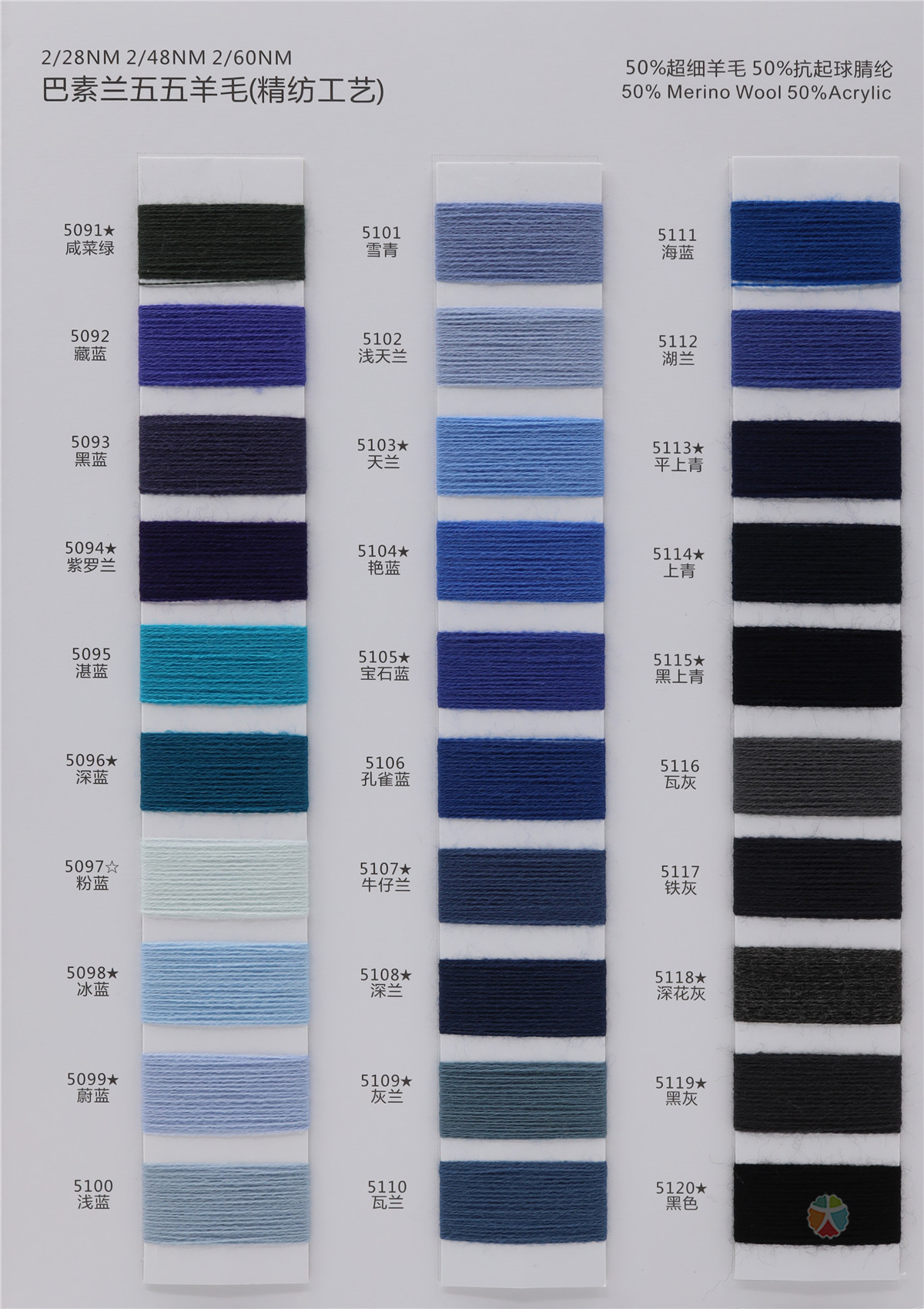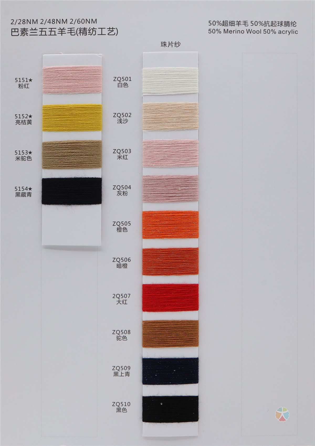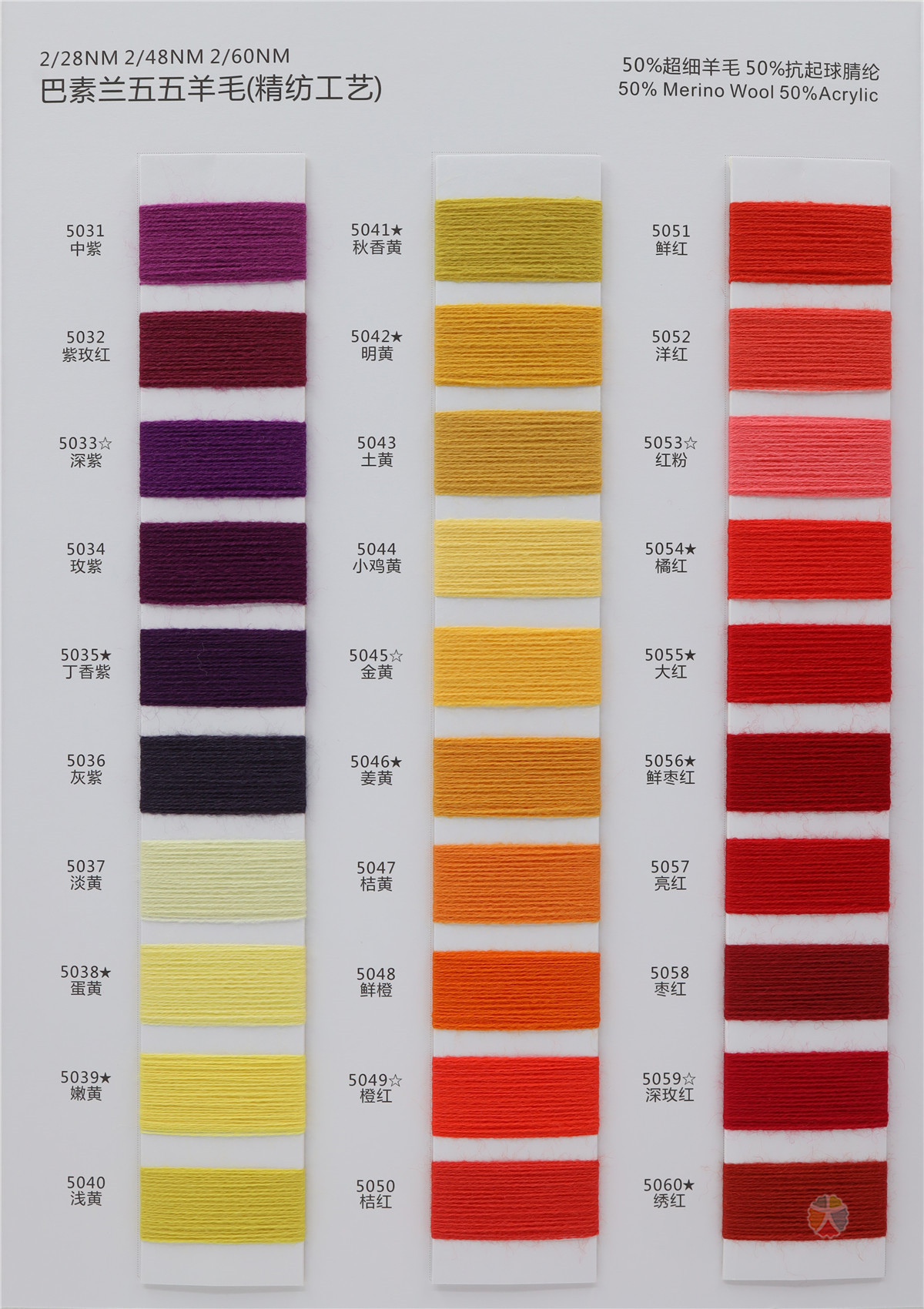 50%美丽诺羊毛 50%抗起球晴纶 50%Merino Wool 50%Acrylic