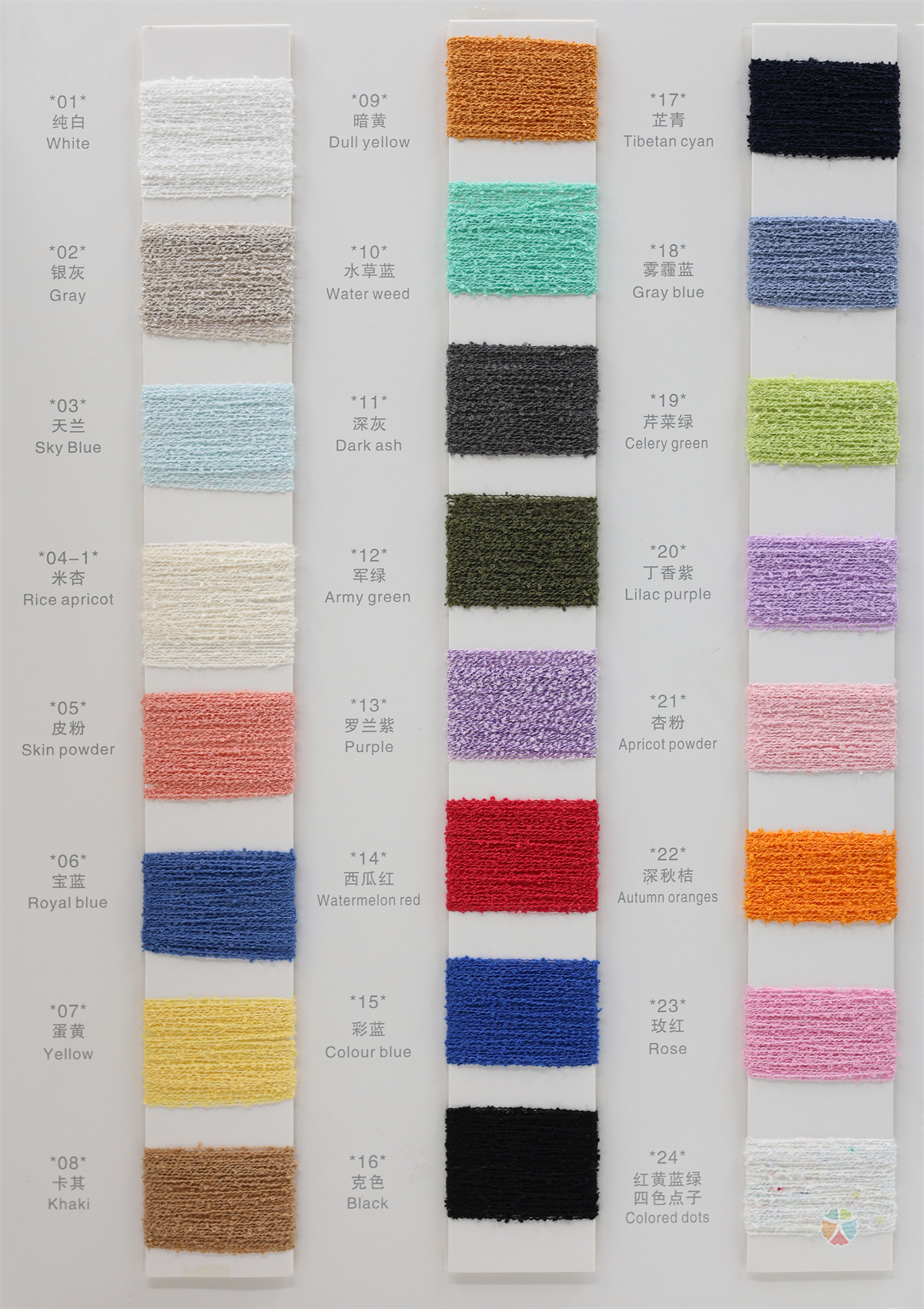 主营:棉尼小圈圈、亚麻小香风、板蓝根纤维、雪落香妃、牛奶丝·棉尼龙包缠纱、优衣麻棉包缠纱、超细牛奶丝·棉尼龙包缠纱、植物棉靛蓝牛仔纱、彩色牛仔棉