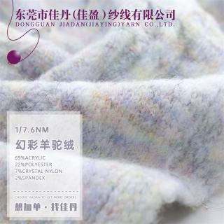 主营:专业生产各种花式纱线、全腈拉毛纱、弹力马海毛、圈圈纱、大肚纱、羽毛纱、珠片纱、带仔纱等
