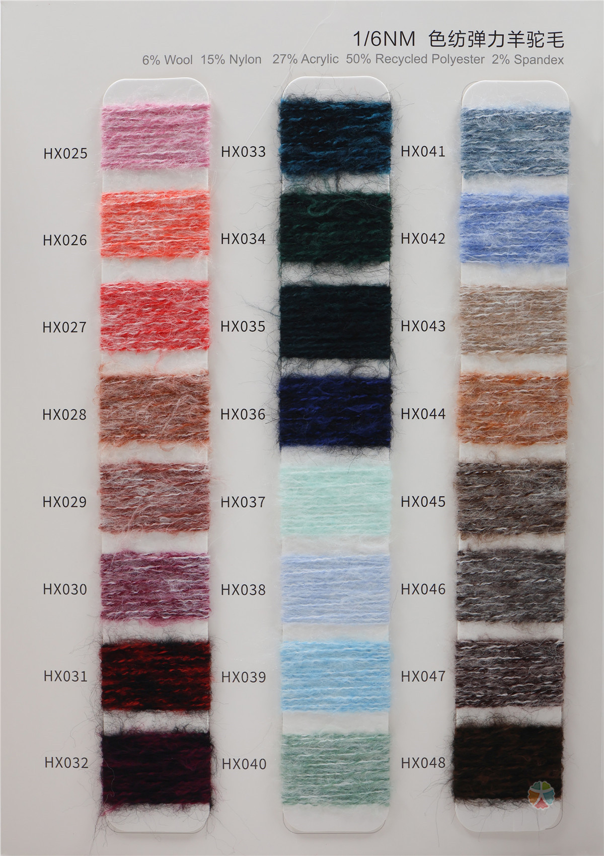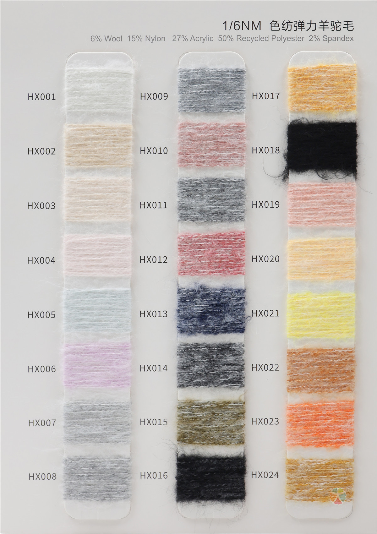 6%羊毛 15%尼龙 27%腈纶 50%再生涤纶 2%氨纶