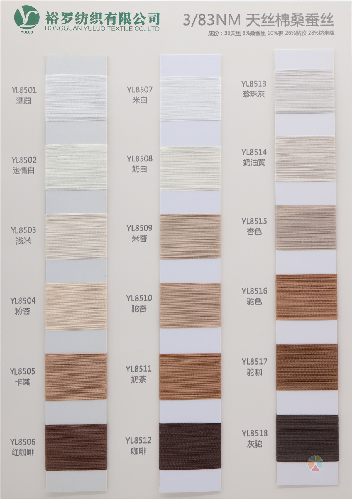 33%天丝 3%桑蚕丝 10%棉 26%黏胶 28%纳米丝