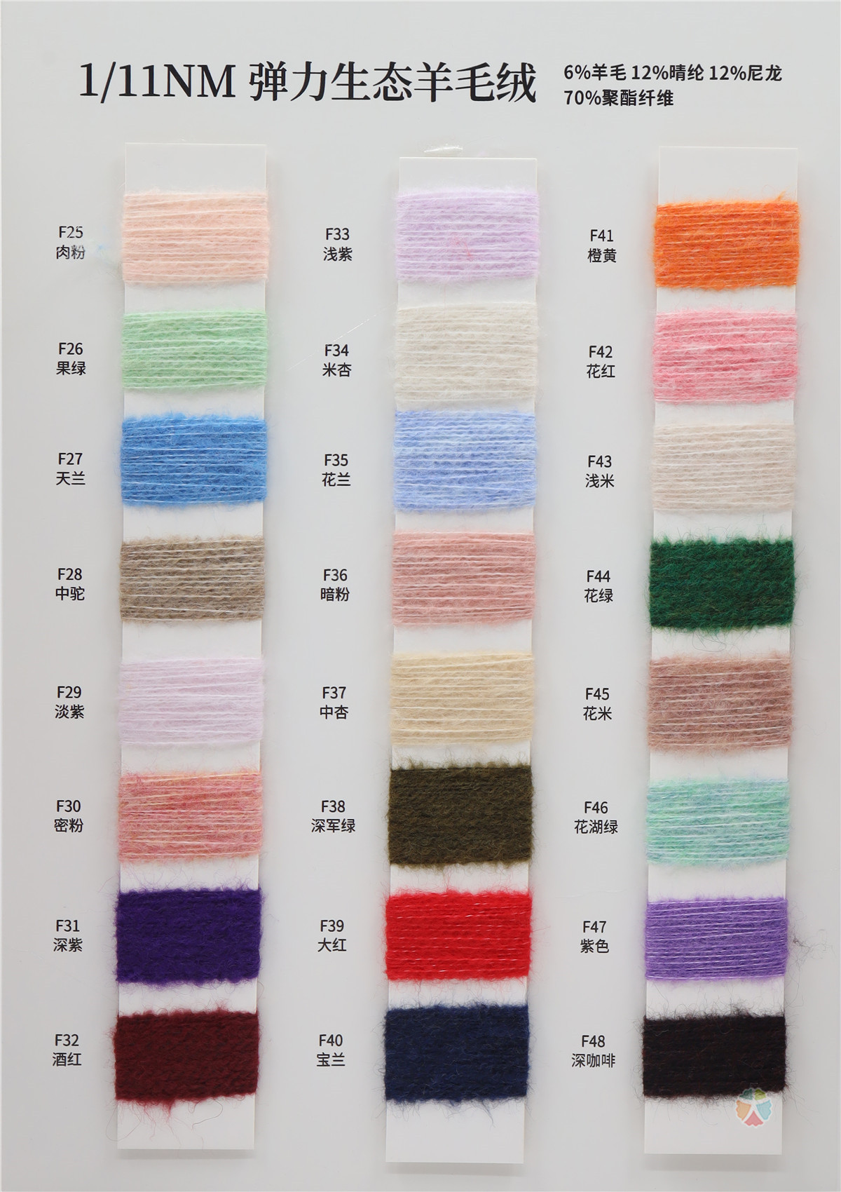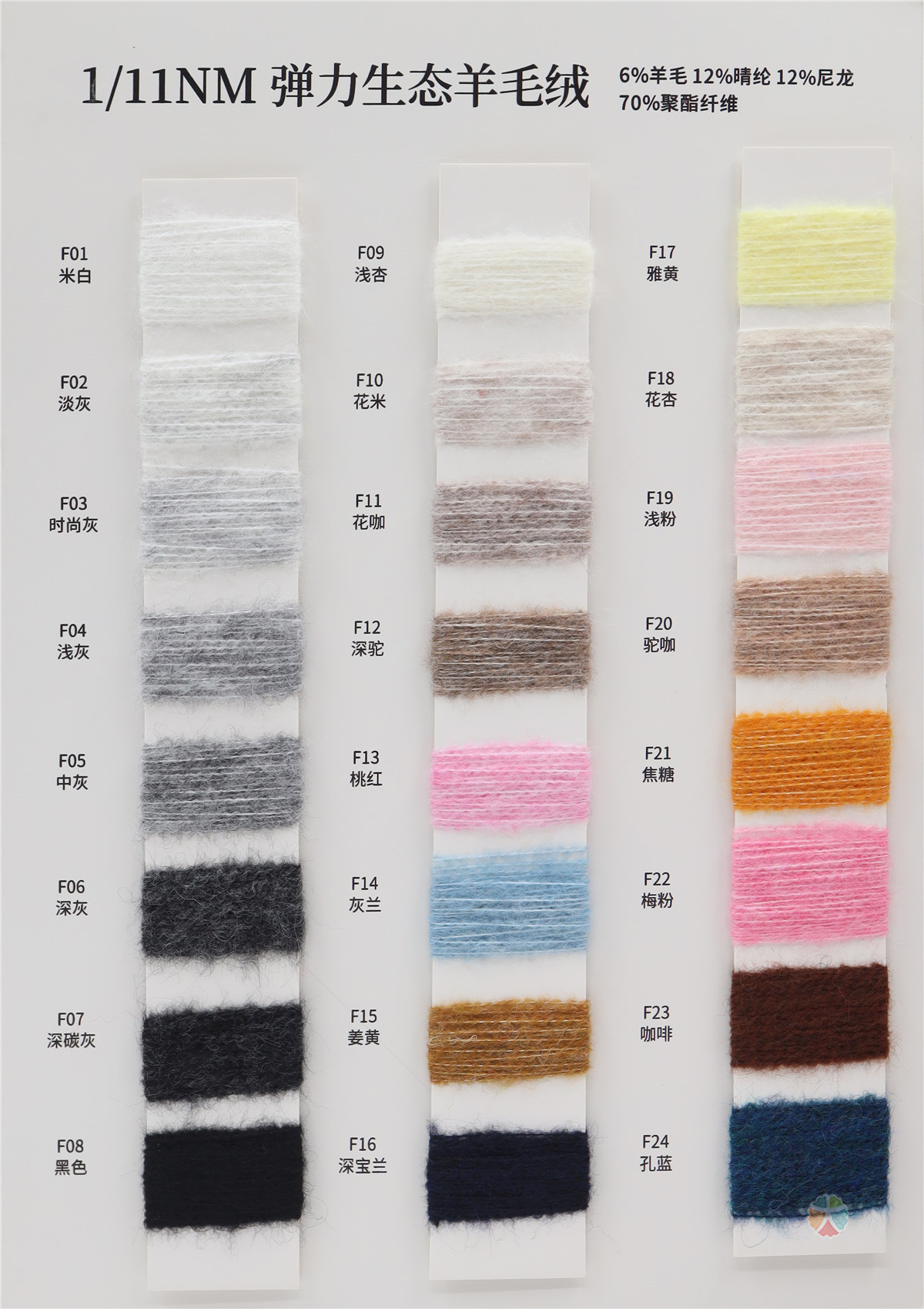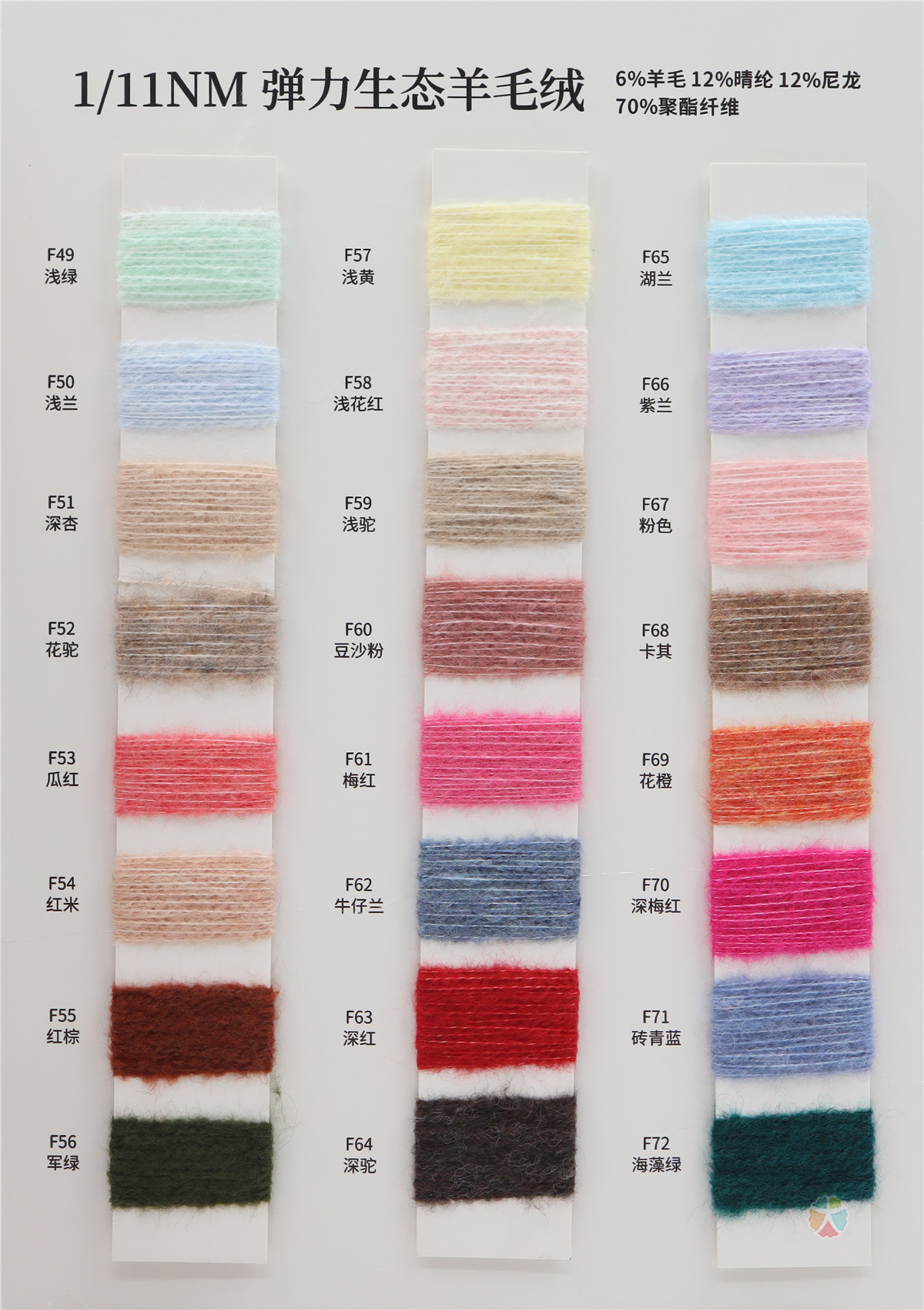 6%羊毛 12%腈纶 12%尼龙 70%聚酯纤维