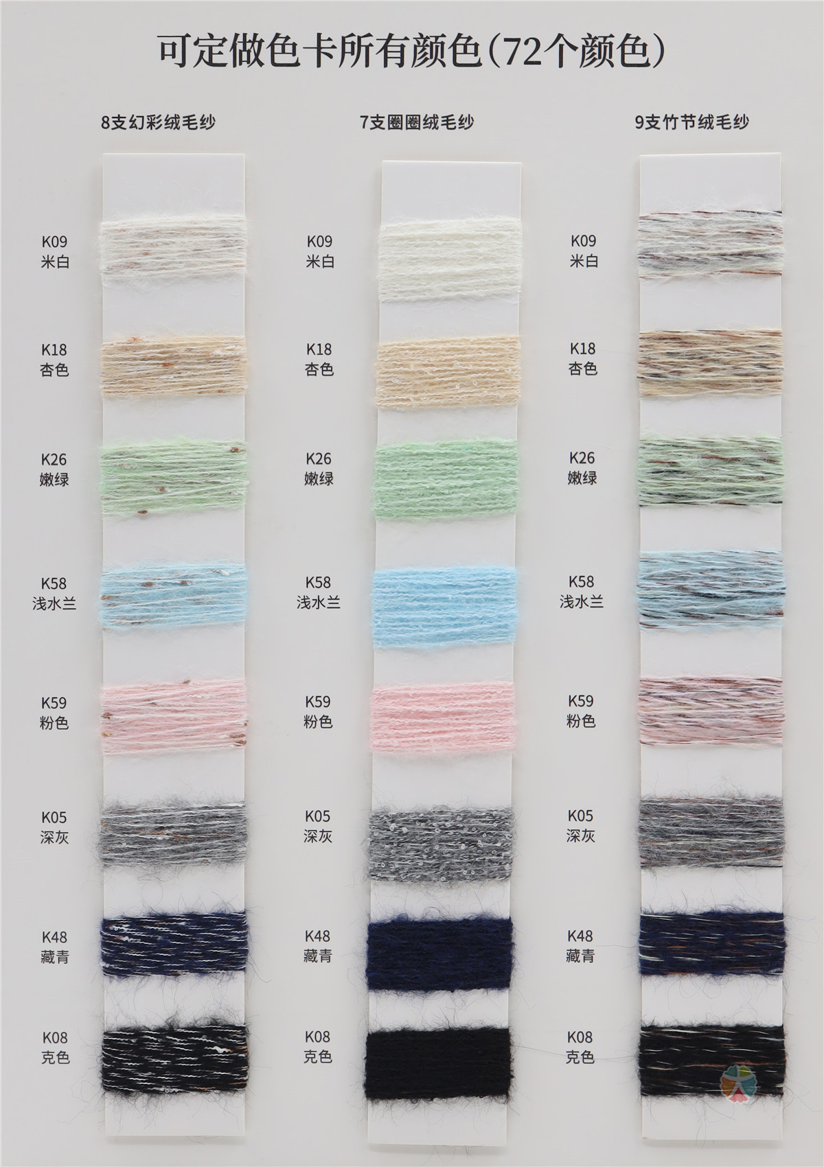 主营:潮汇纺织有限公司:包芯纱系列,短貂.银貂.黄金貂.长毛水貂绒.兔毛兔绒系列,羊毛羊绒系列,马海毛系列,空心带子纱系列,冰岛毛,圈圈纱,闪光纱,小肚纱,大肚纱,斜毛纱,单面绒,双面绒,竹节纱,彩点纱,水结珠,米粉纱,冰曲,仿貂绒,蜈蚣纱,羽毛纱,渐变纱,猫毛纱,丝绒,雪花点,香肠纱,松树纱