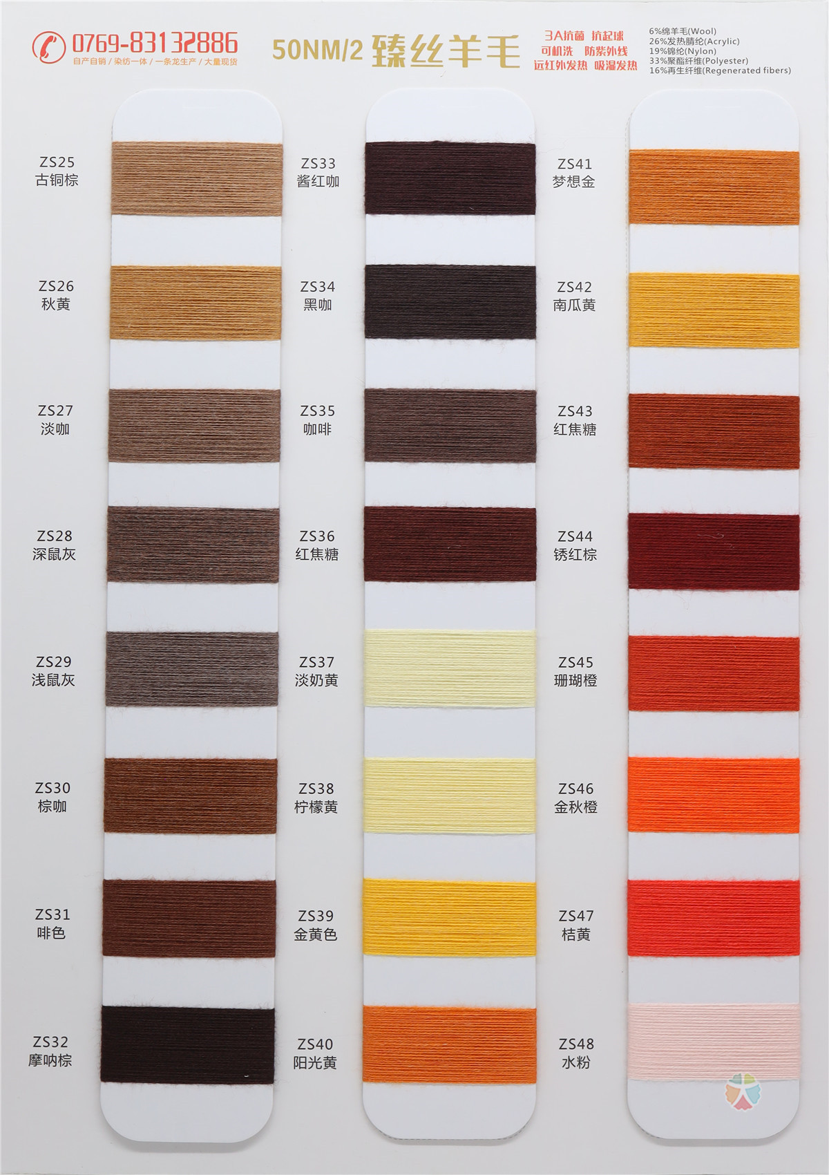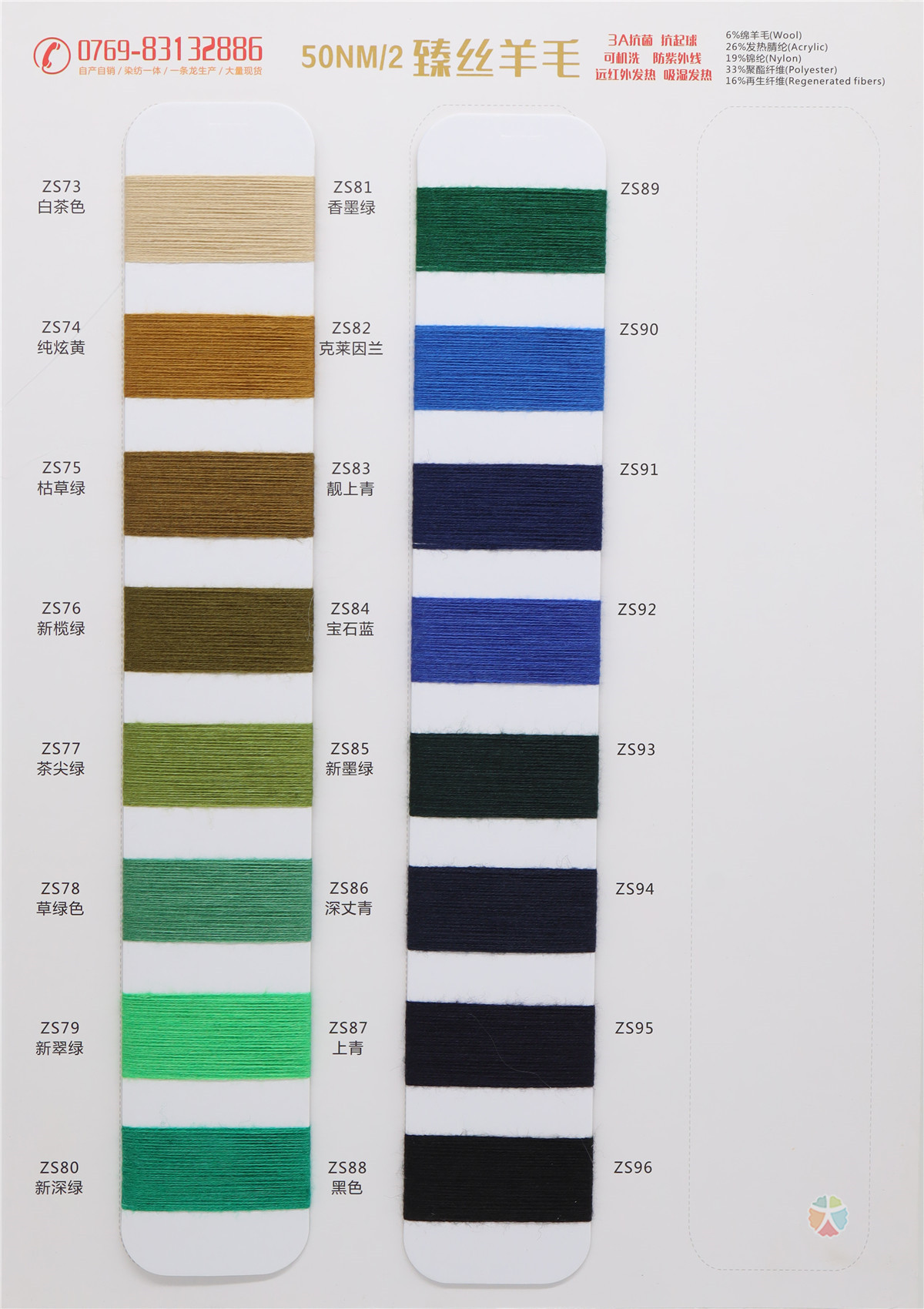 6%绵羊毛 26%发热腈纶 19%锦纶 33%聚酯纤维 16%再生纤维