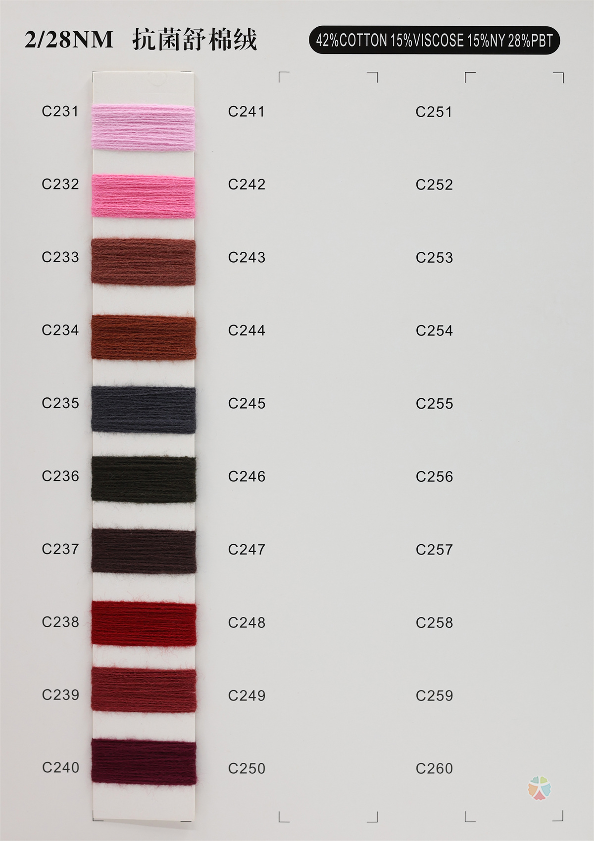 42%Cotton 15%Viscose 15%Nylon 28%PBT
