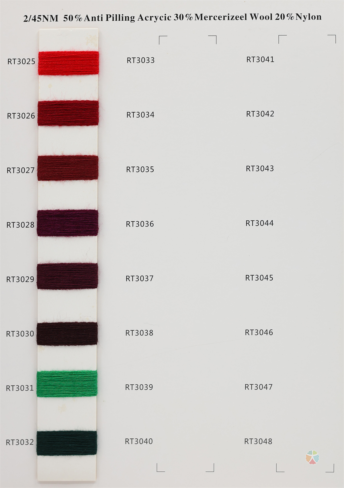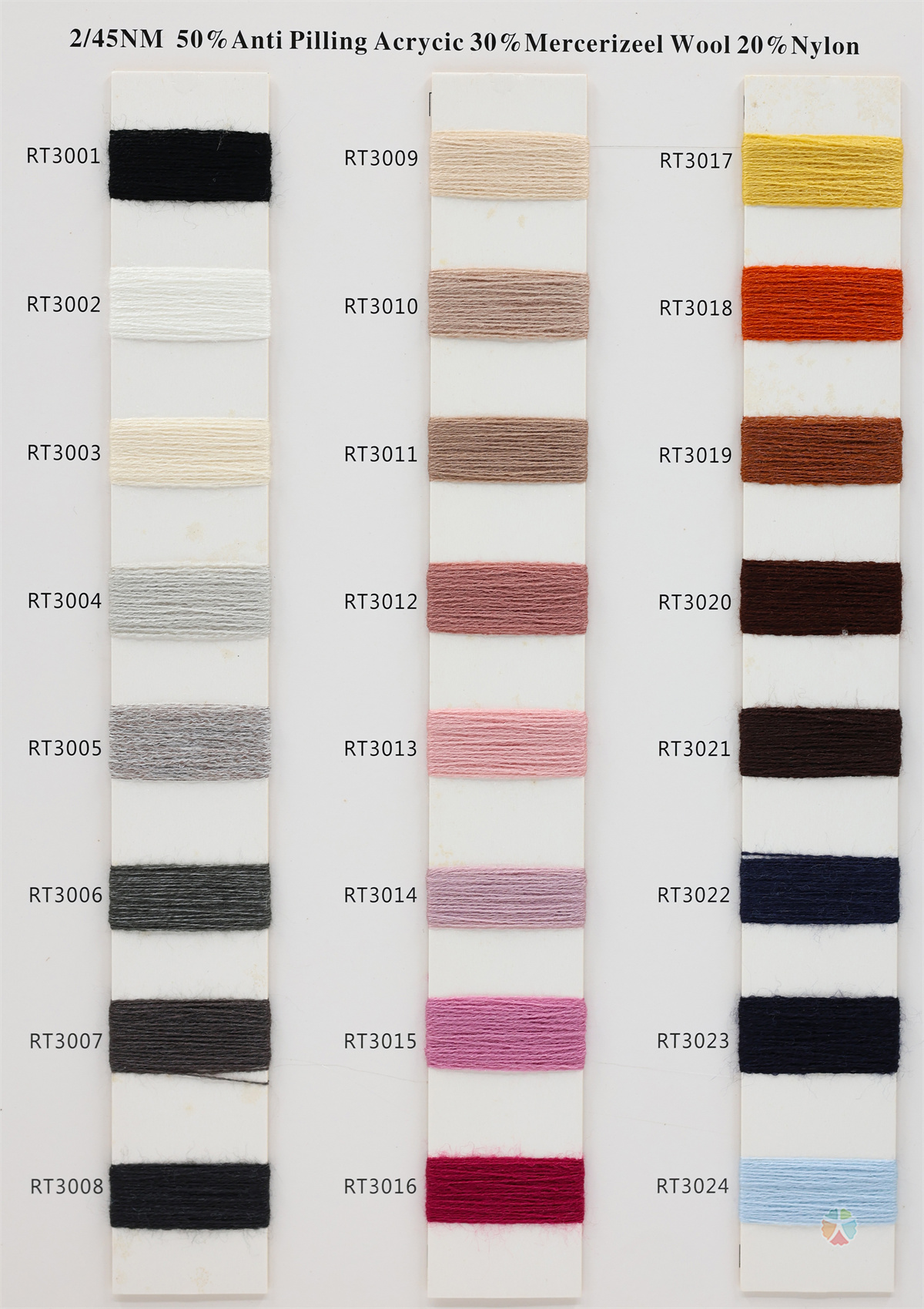 50%Anti-Pining Acrylic 30%Mercerizeel Wool 20%Nylon