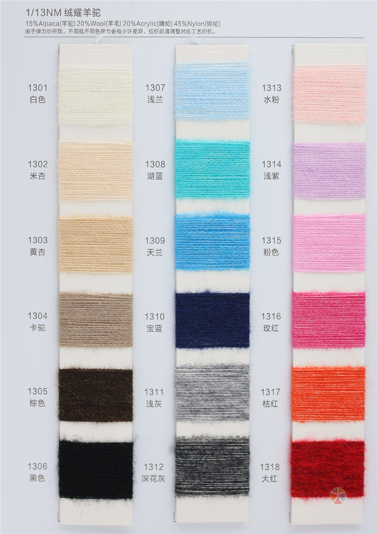 15%羊驼 20%羊毛 20%腈纶 45%尼龙