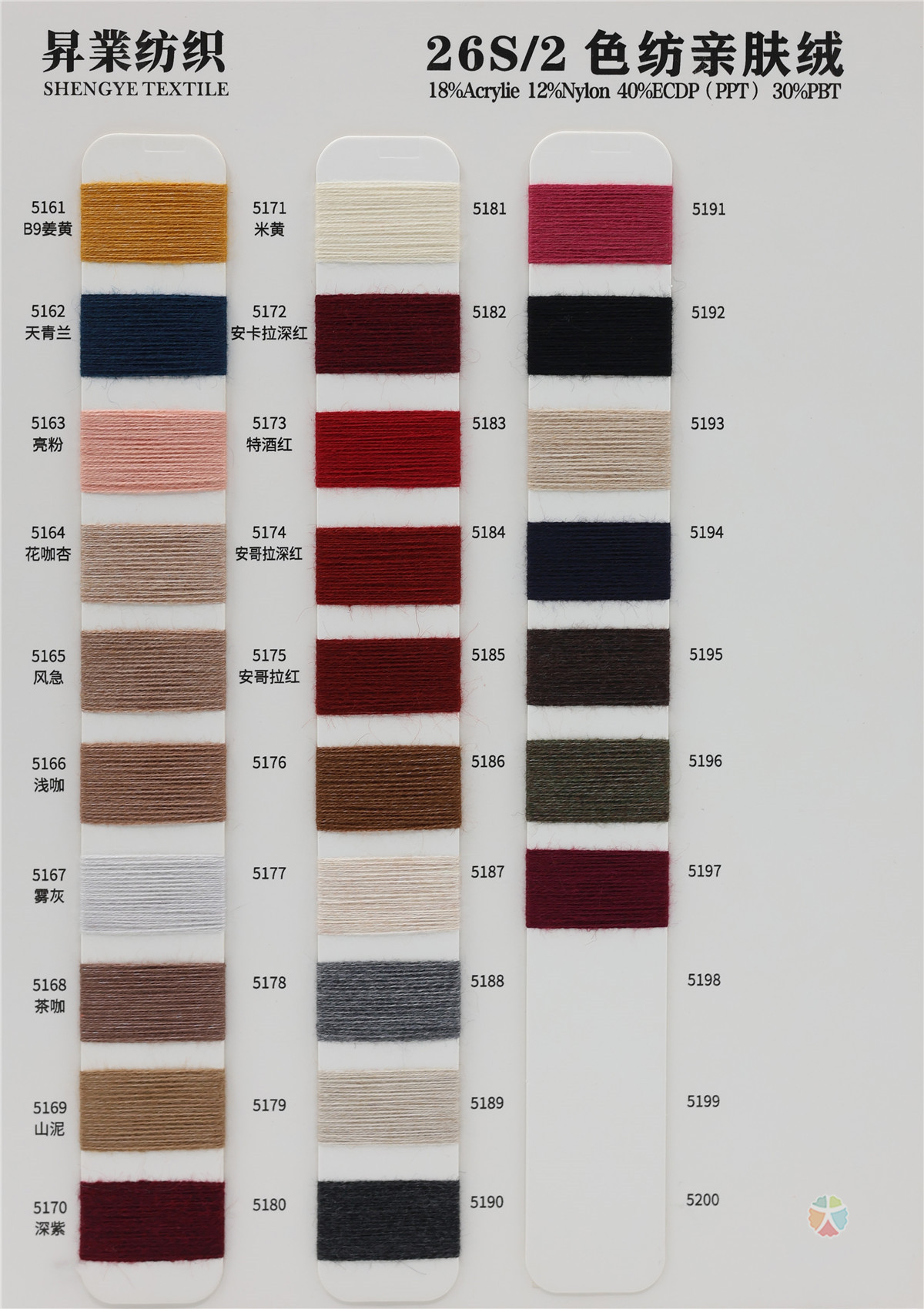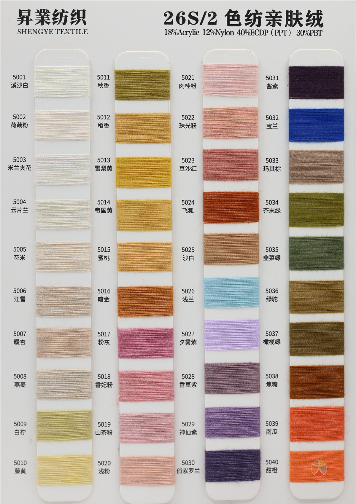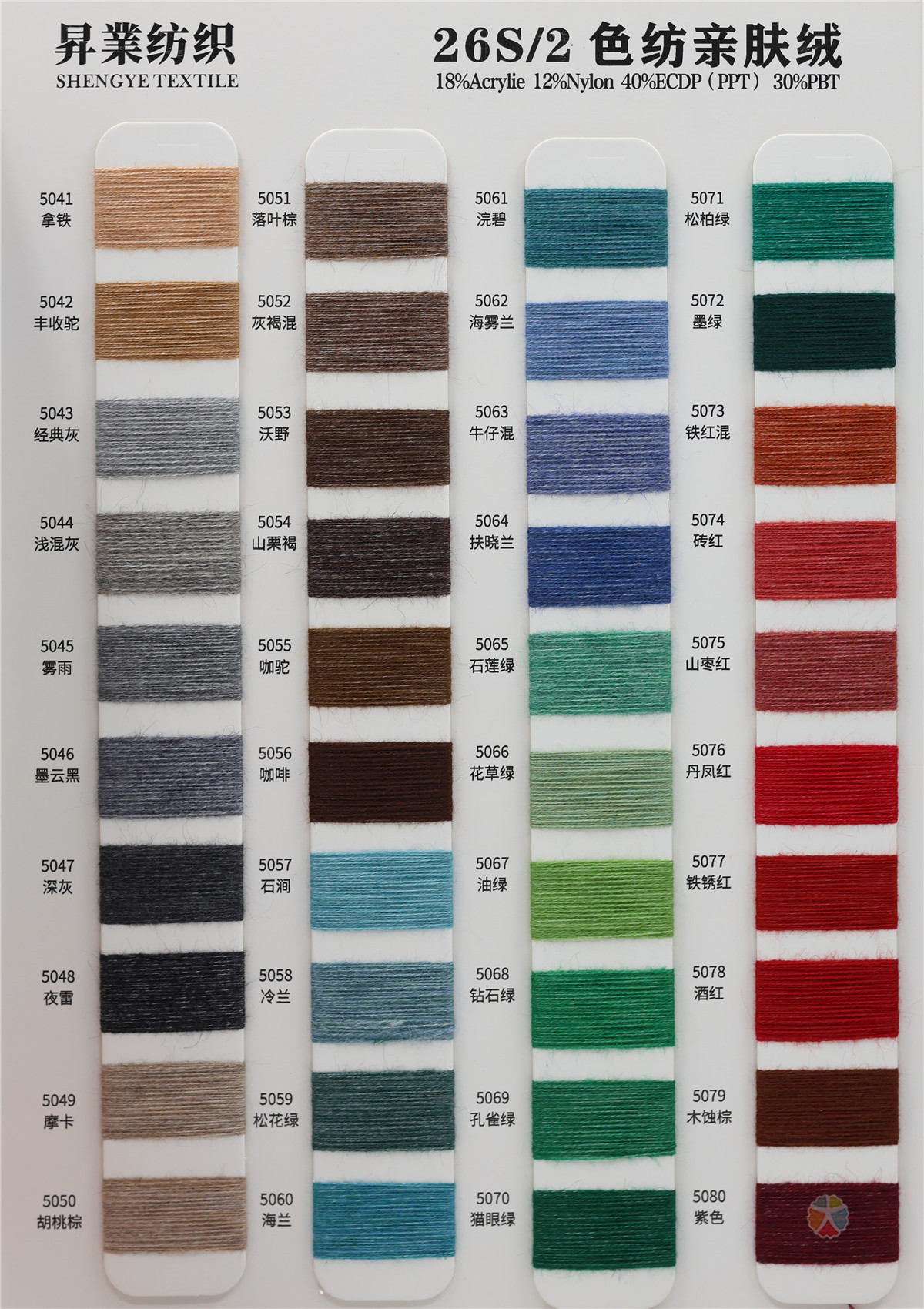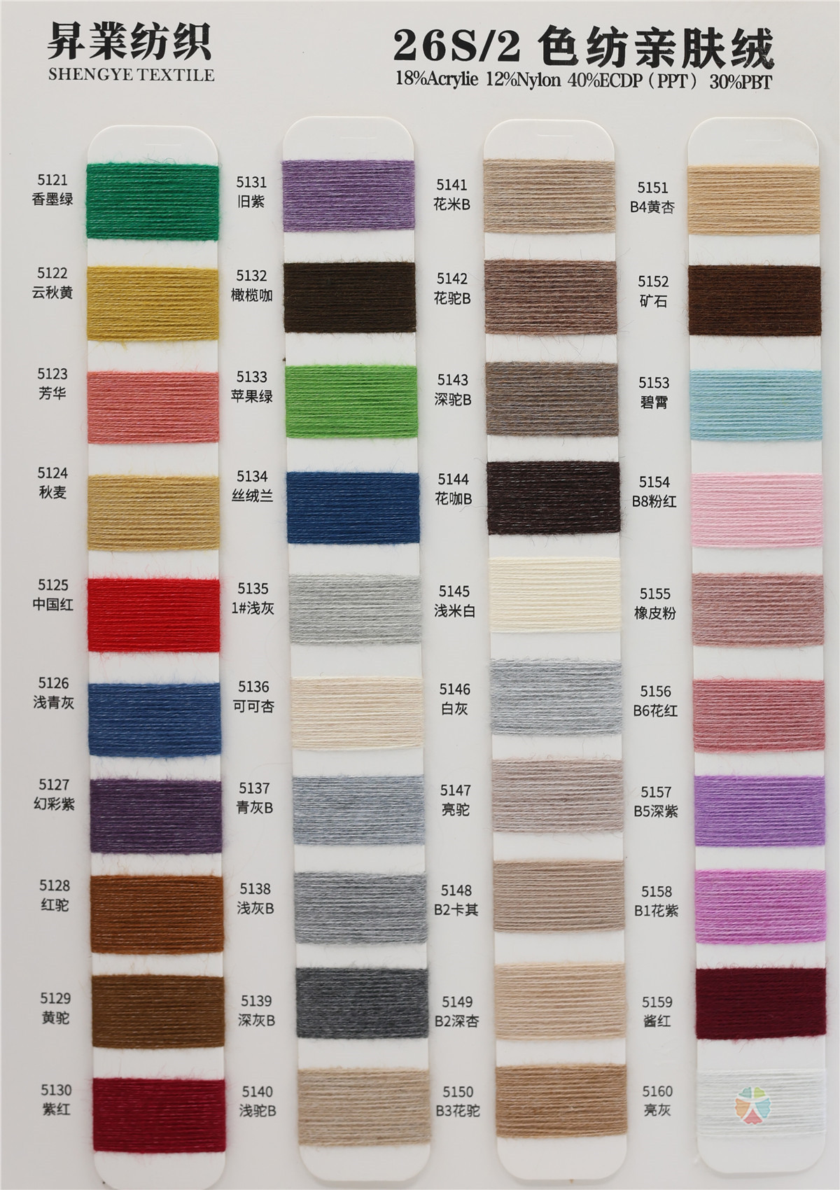 18%腈纶 12%尼龙 40%ECDP(PPT) 30%PBT