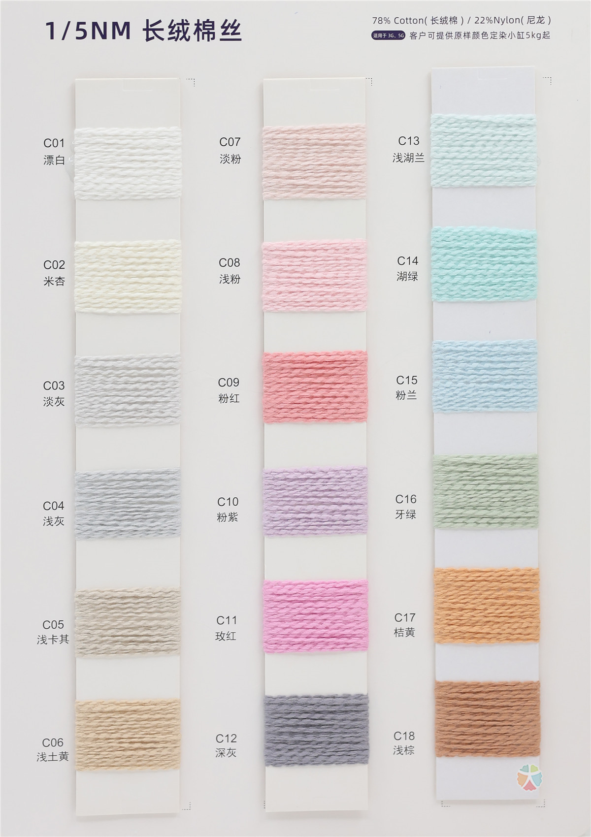 主营:1/7NM扣扣圈圈(渐变)、1/12NM华苹尼绒、1/4.5NM 华曜尼绒、2/7.5NM卡米尔拉绒纱、1/5.8NM极品喷毛纱、1/14NM毛尼绒、1/20NM立体纳米丝、1/4.2NM高比例羊驼马海毛、2/28NM膨体柔丽绒、2/16NM膨体羊毛绒、1/14NM色纺弹力马海毛、1/13NM超细羊驼毛、1/14NM骆驼绒、2/54NM高捻包芯纱、2/26NM 28NM有色仿羊绒、1/13NM高比例羊毛马海毛