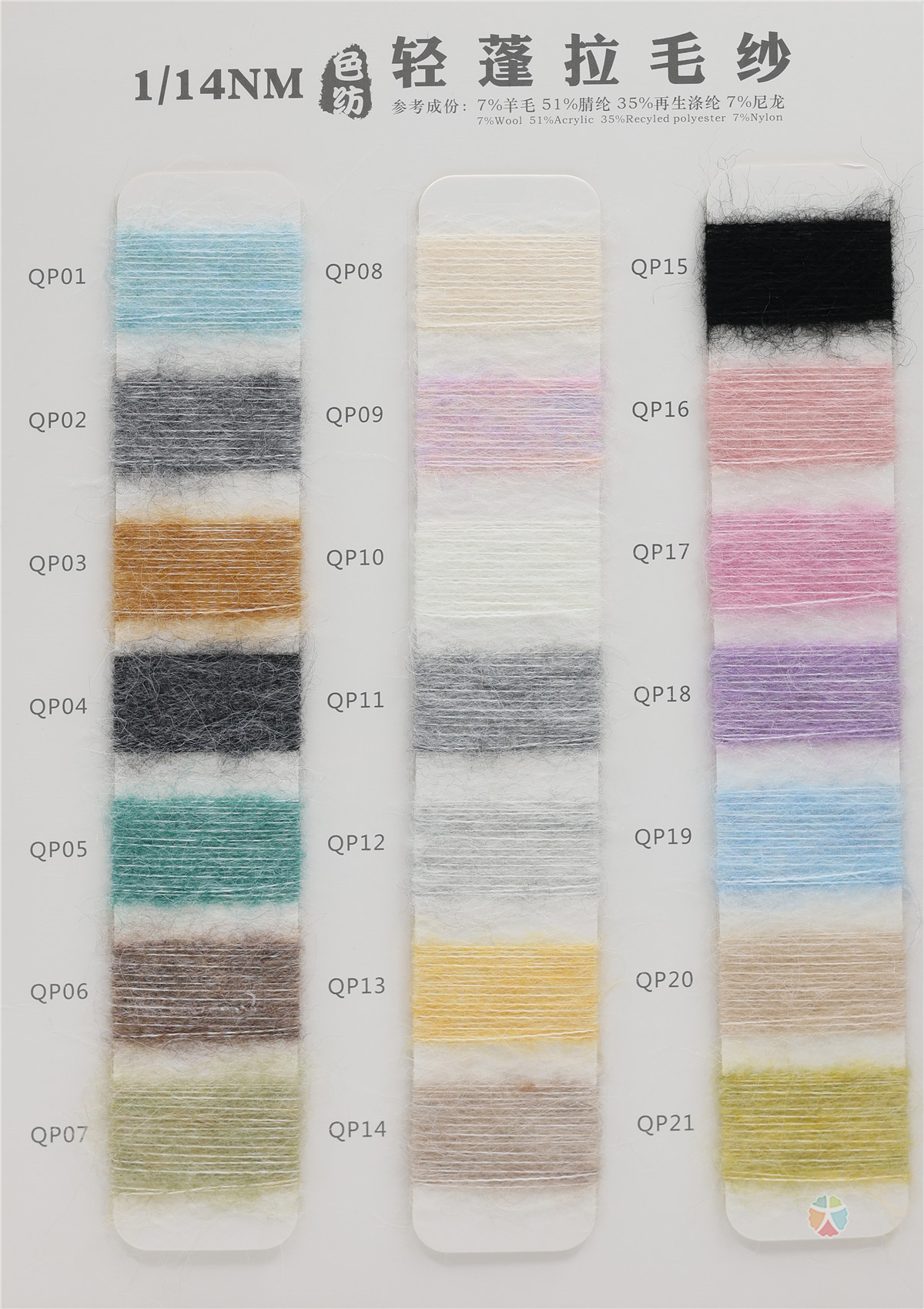 7%羊毛 51%腈纶 35%再生涤纶 7%尼龙