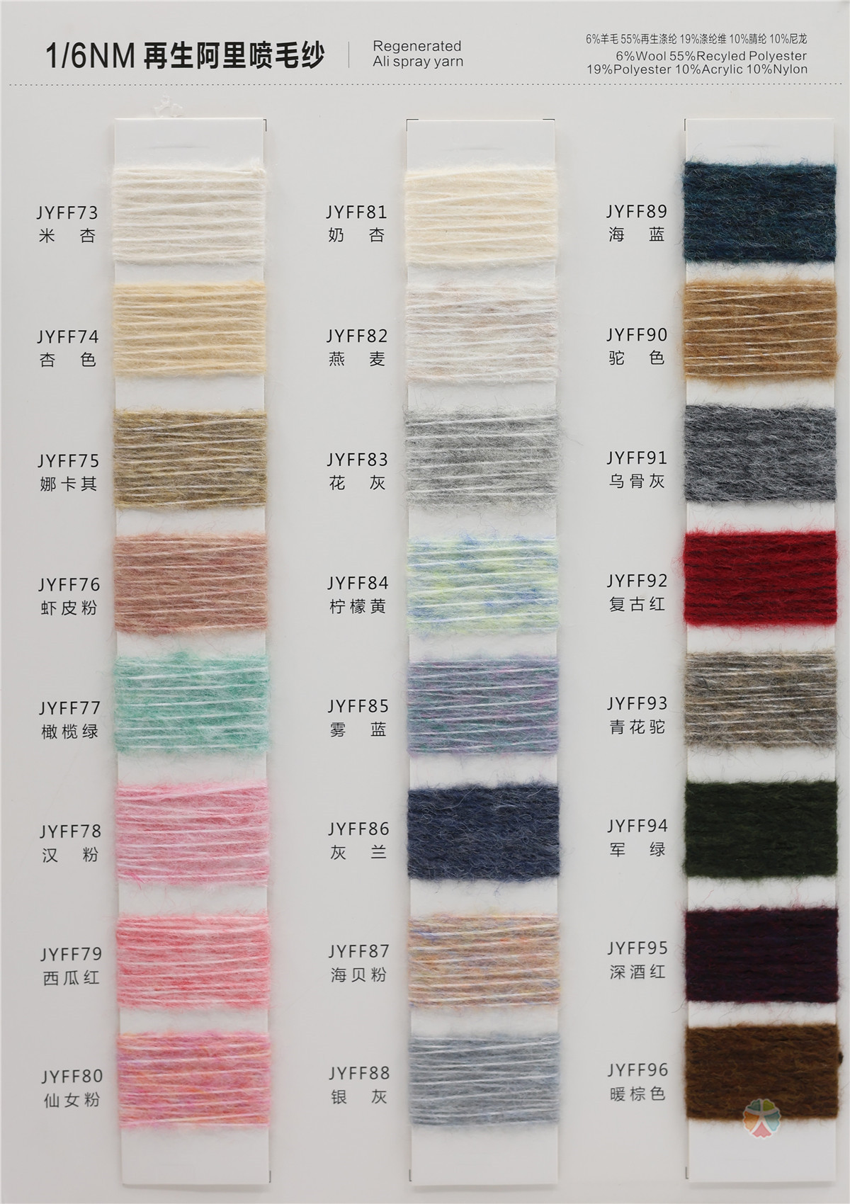 6%羊毛 55%再生涤纶 19%涤纶维 10%腈纶 10%尼龙