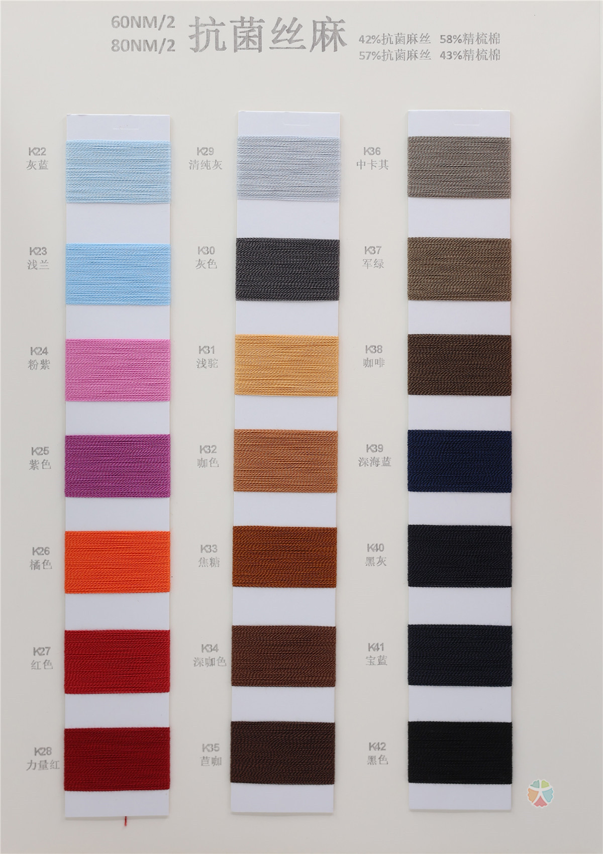 42%抗菌麻丝 58%精梳棉 / 57%抗菌麻丝 43%精梳棉