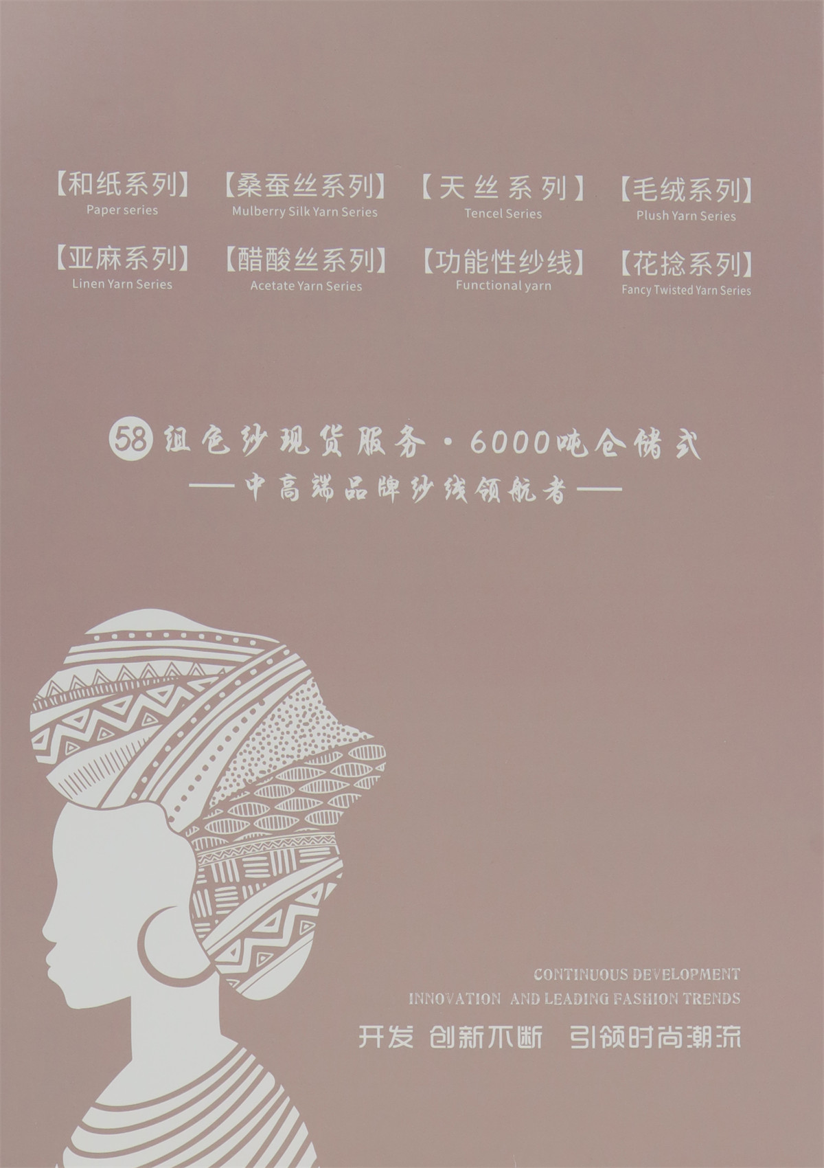 主营:1/7.6NM 进口和纸纱 1/10NM 进口和纸纱 1/19NM 进口和纸纱 1/24NM 绢丝和纸纱 1/36NM 亚麻和纸纱 主营:和纸 亚麻 绢丝 醋酸 天丝 羊毛 羊绒 棕熊