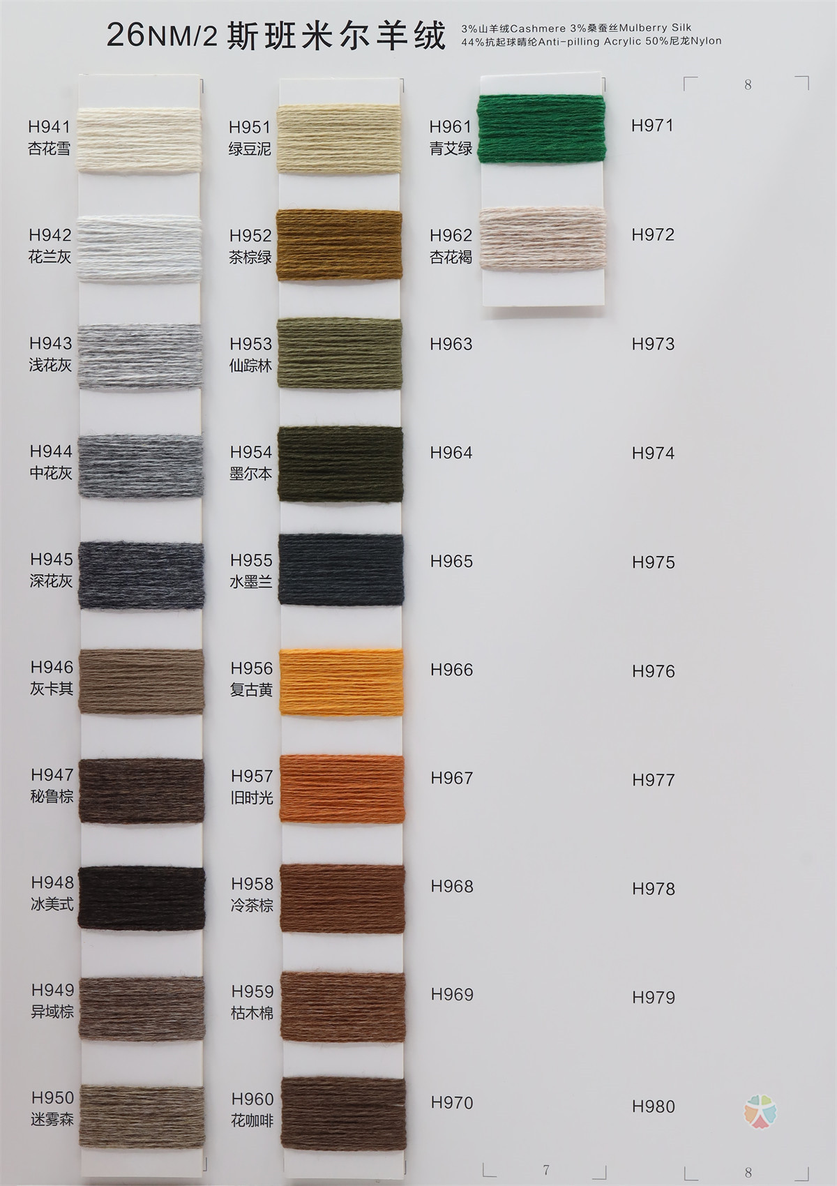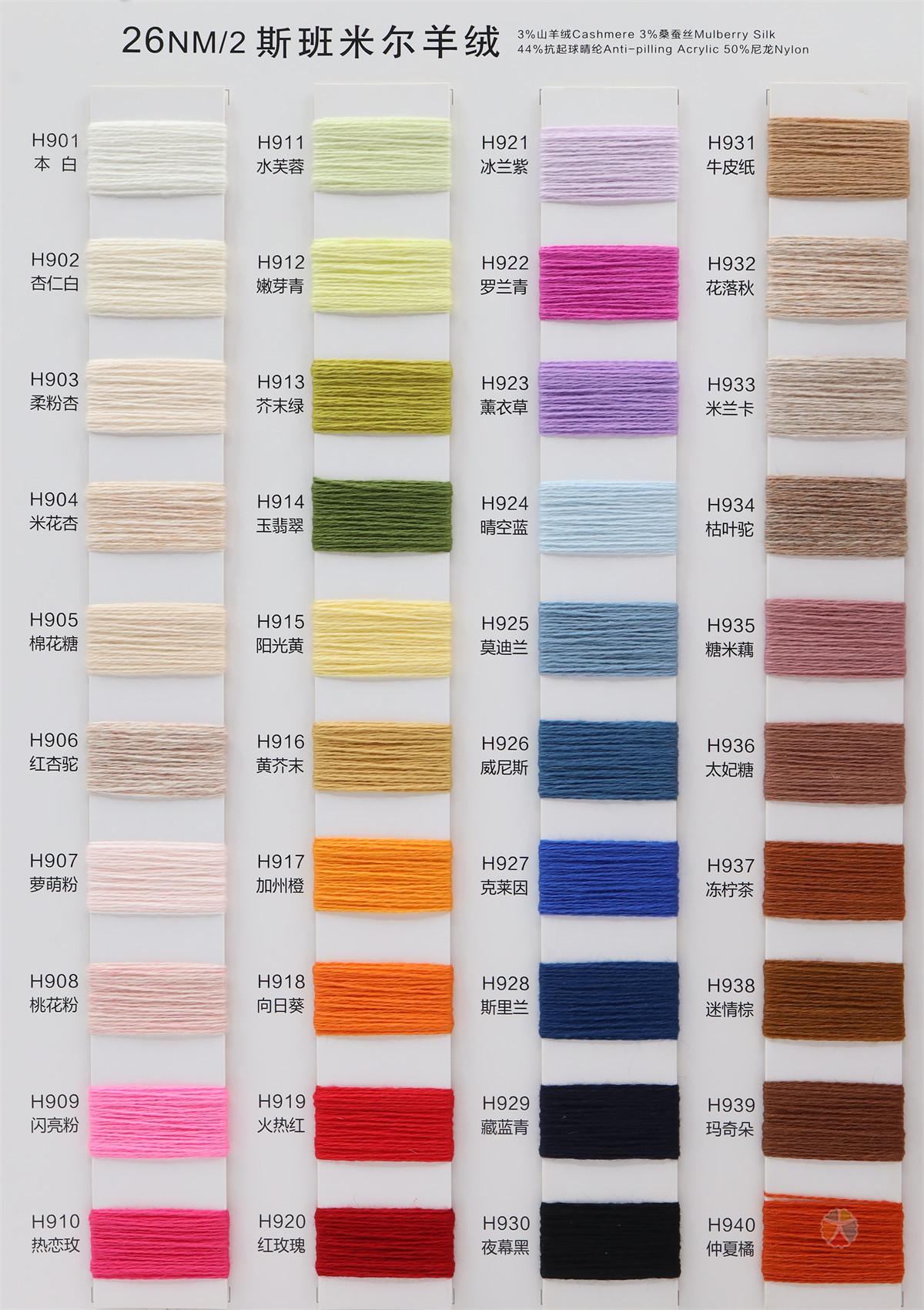 3%山羊绒 3%桑蚕丝 44%抗起球晴纶 50%尼龙