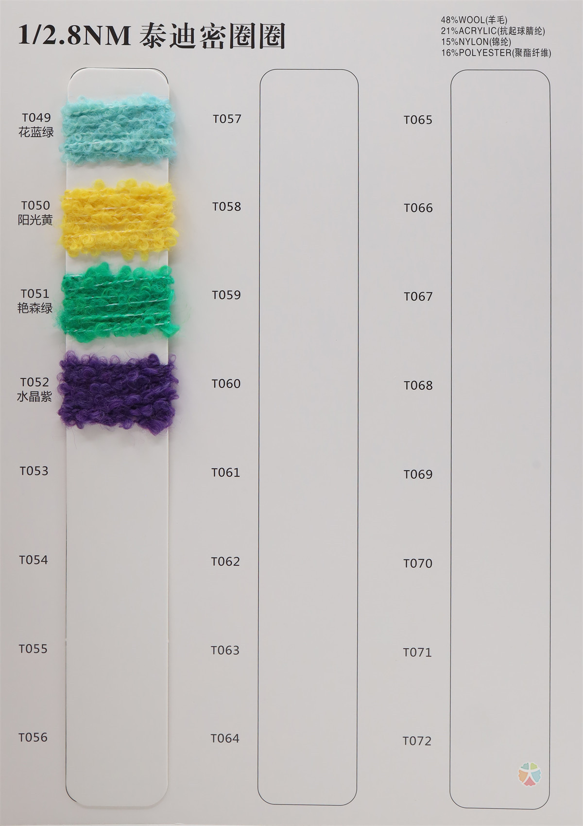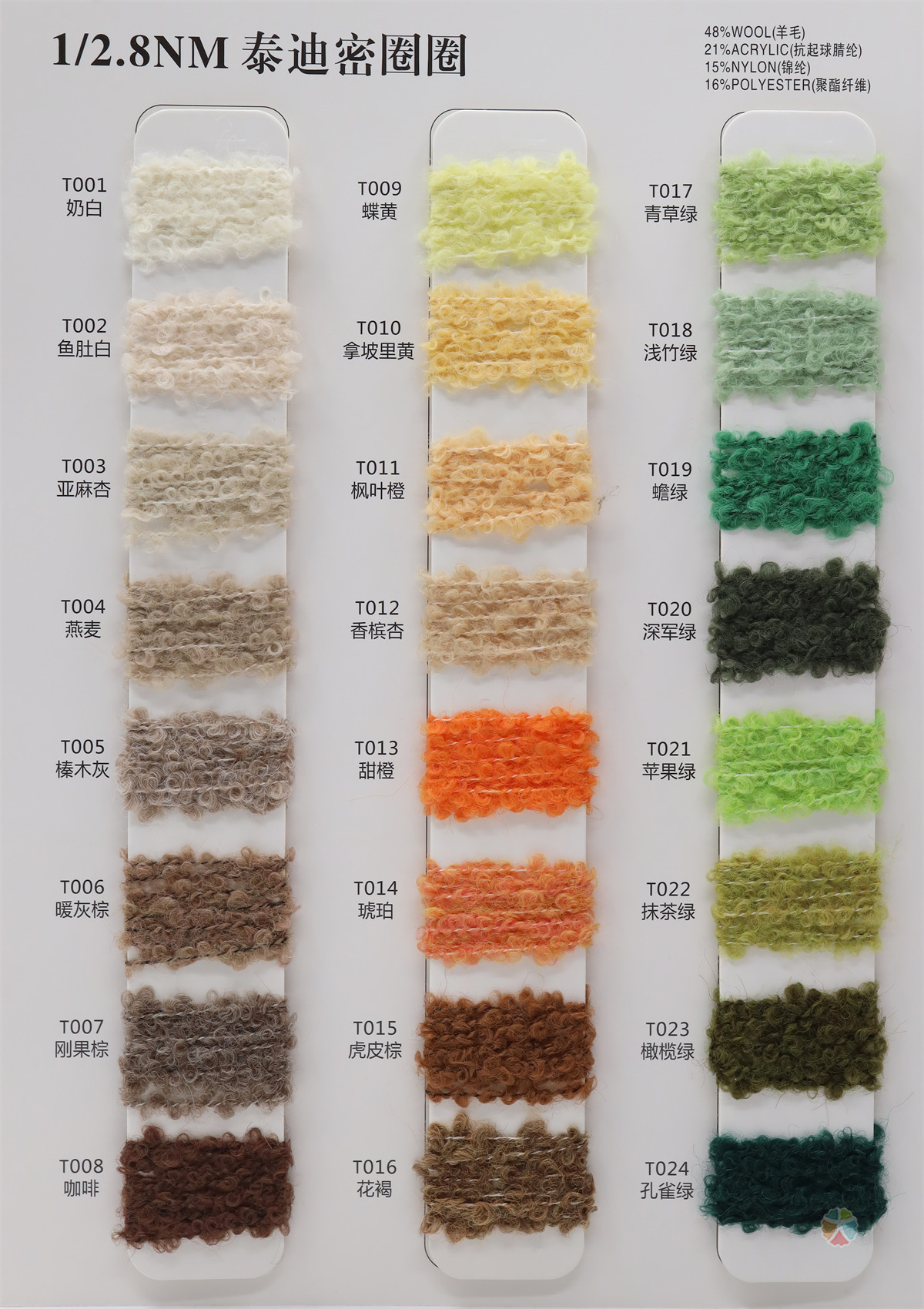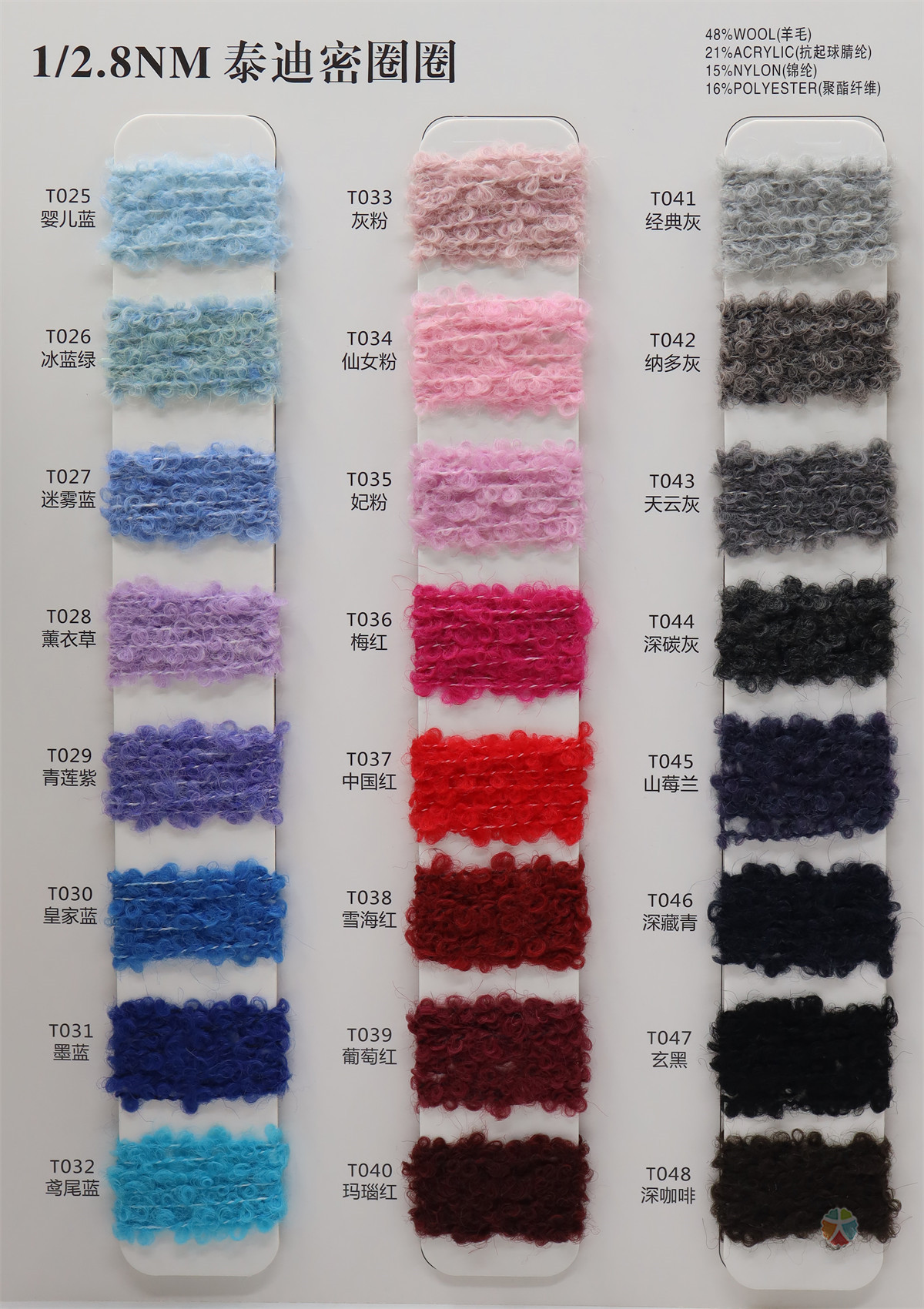 48%羊毛 21%抗起球腈纶 15%锦纶 16%聚酯纤维
