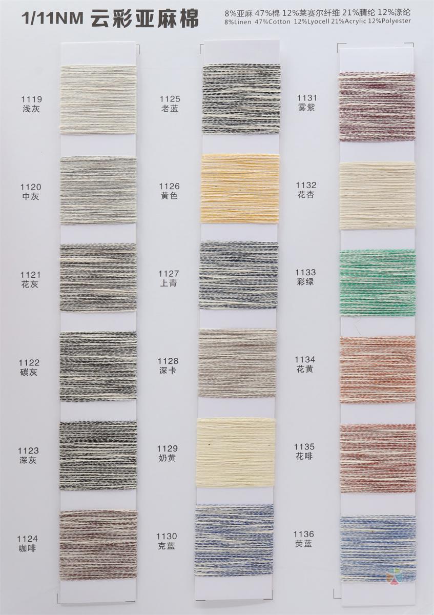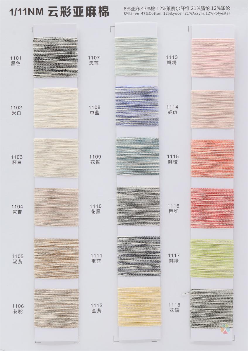 8%亚麻 47%棉 12%莱赛尔纤维 21%腈纶 12%涤纶