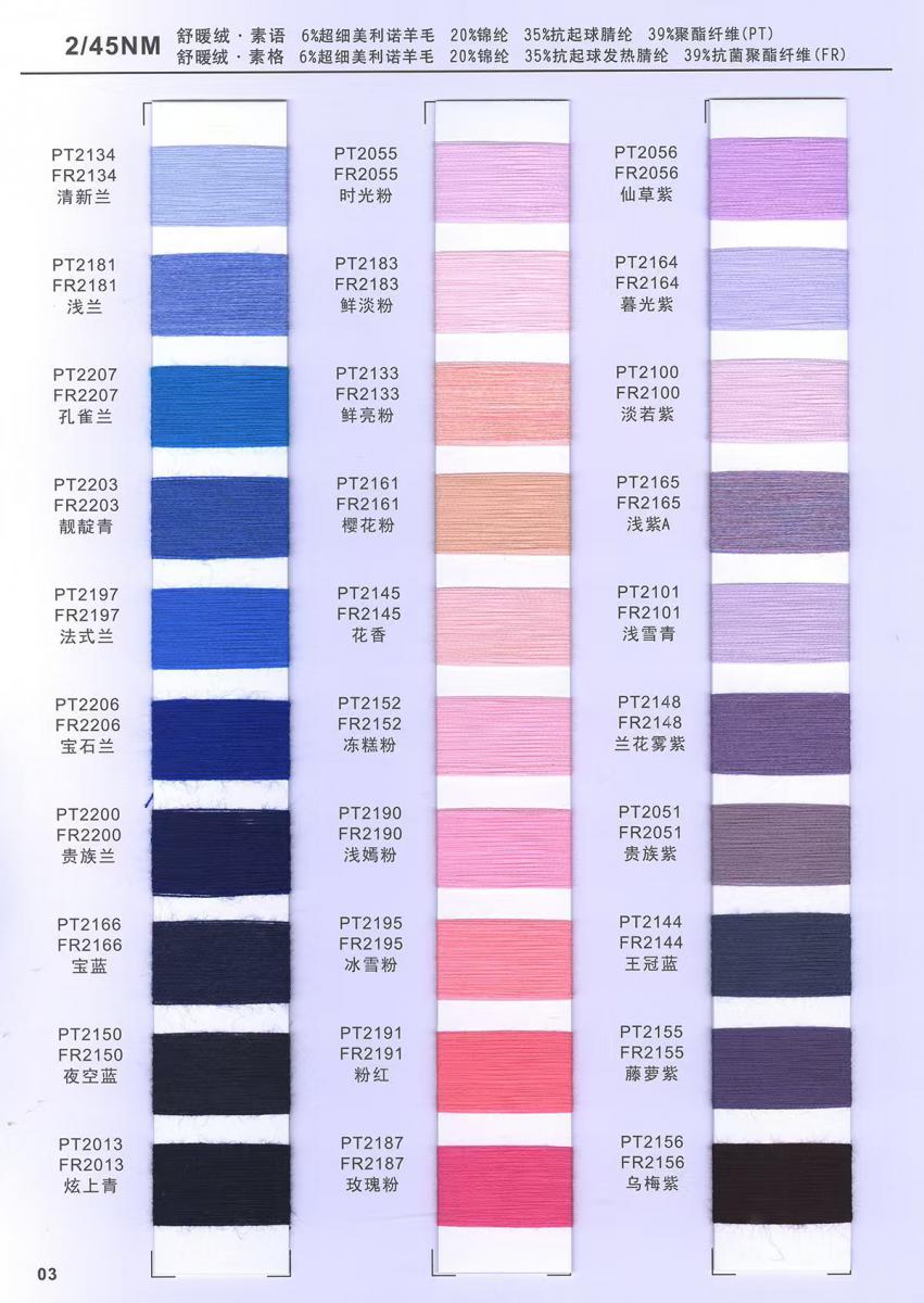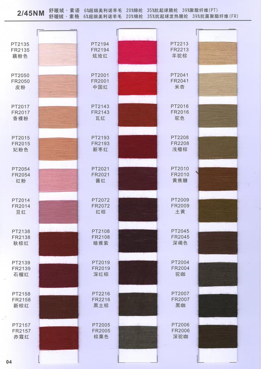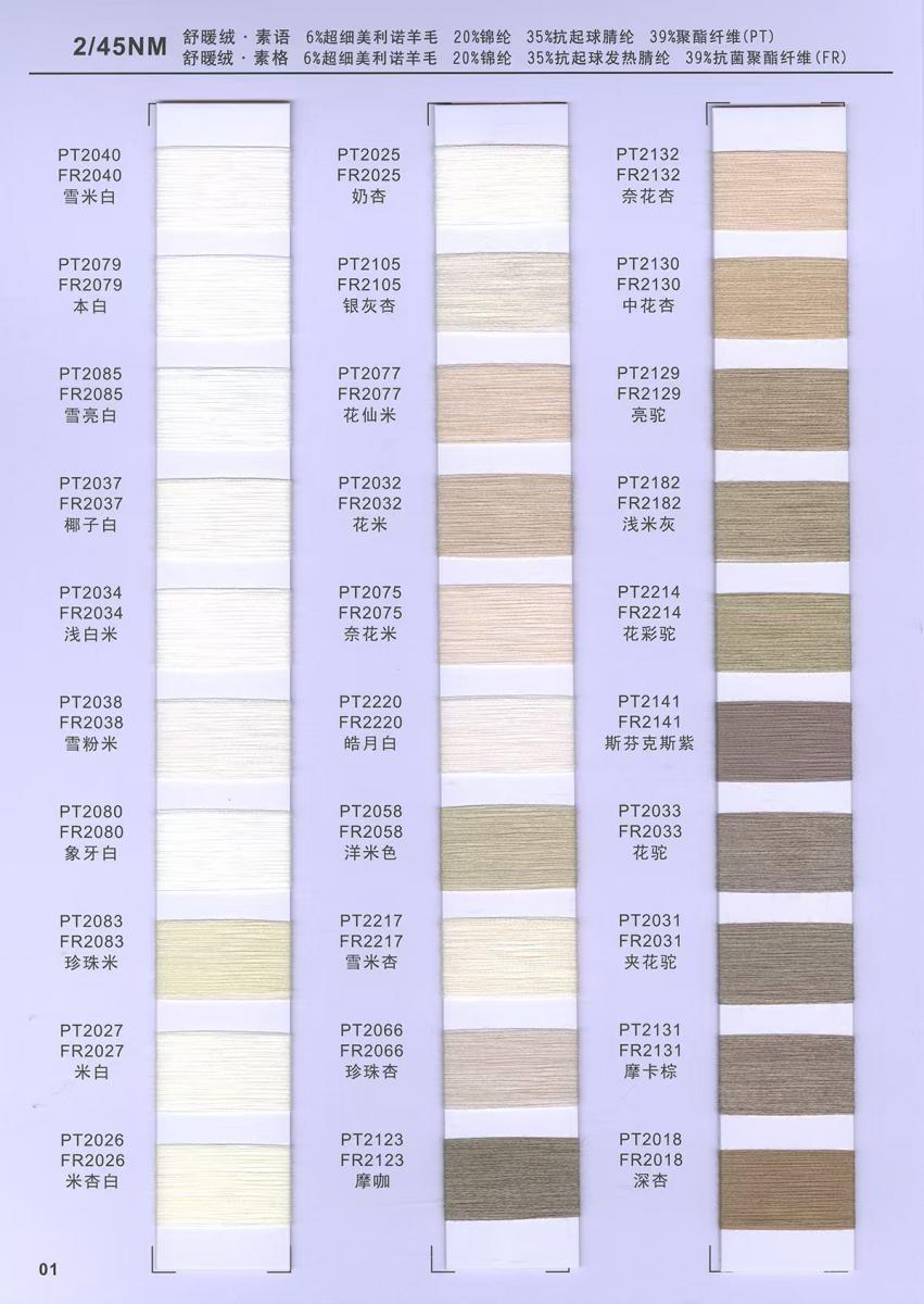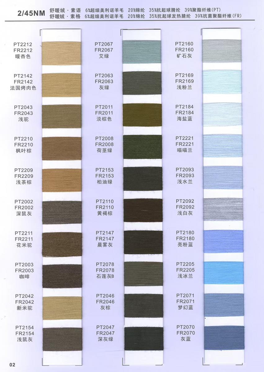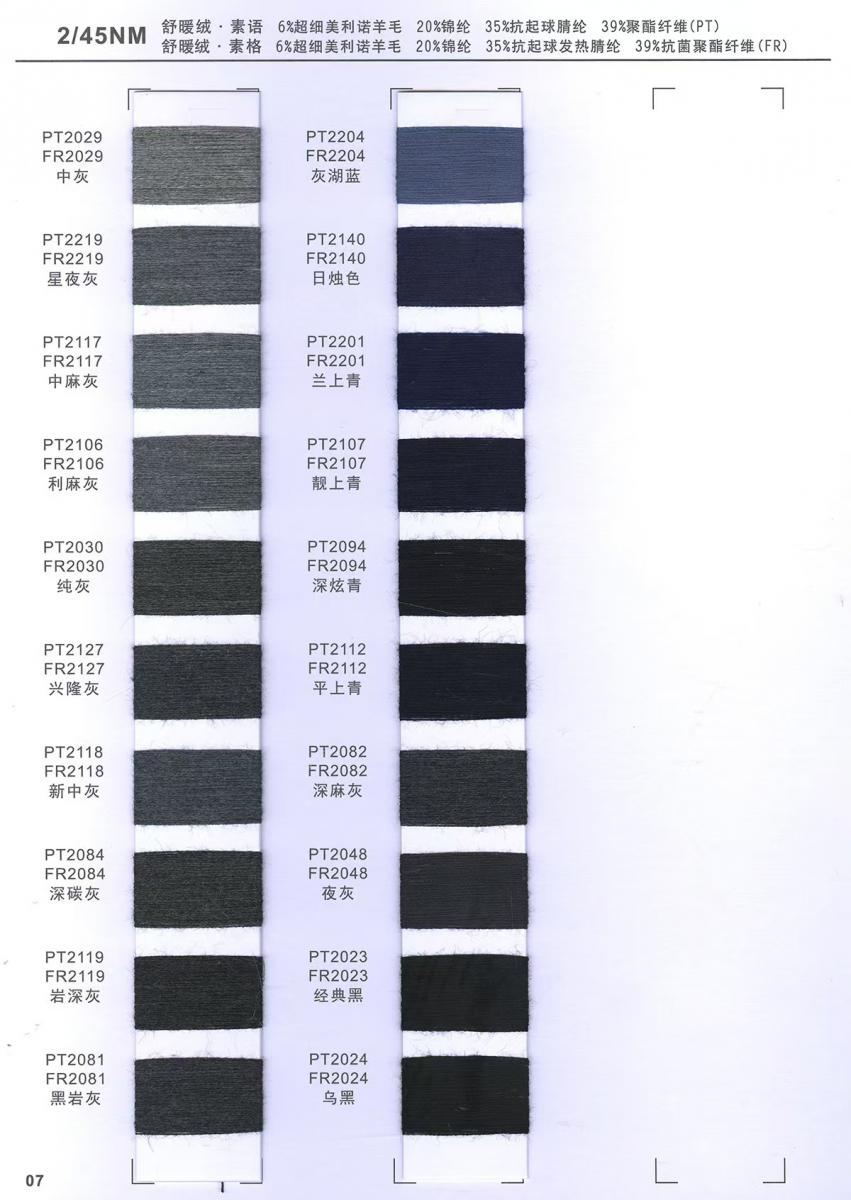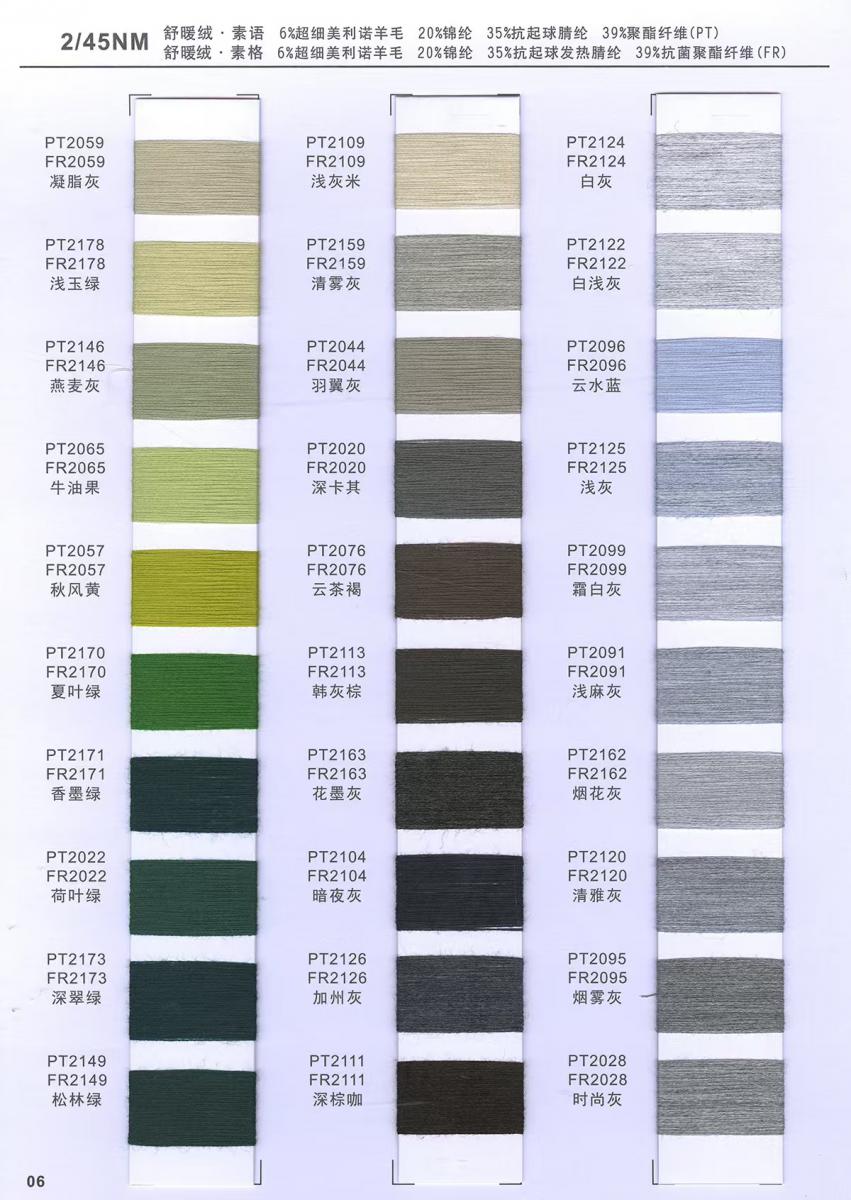6%超细美利诺羊毛20%锦纶35%抗起球腈纶39%聚酯纤维(普通PT)&6%超细美利诺羊毛20%锦纶35%抗起球发热腈纶39%抗菌聚酯纤维(发热FR)