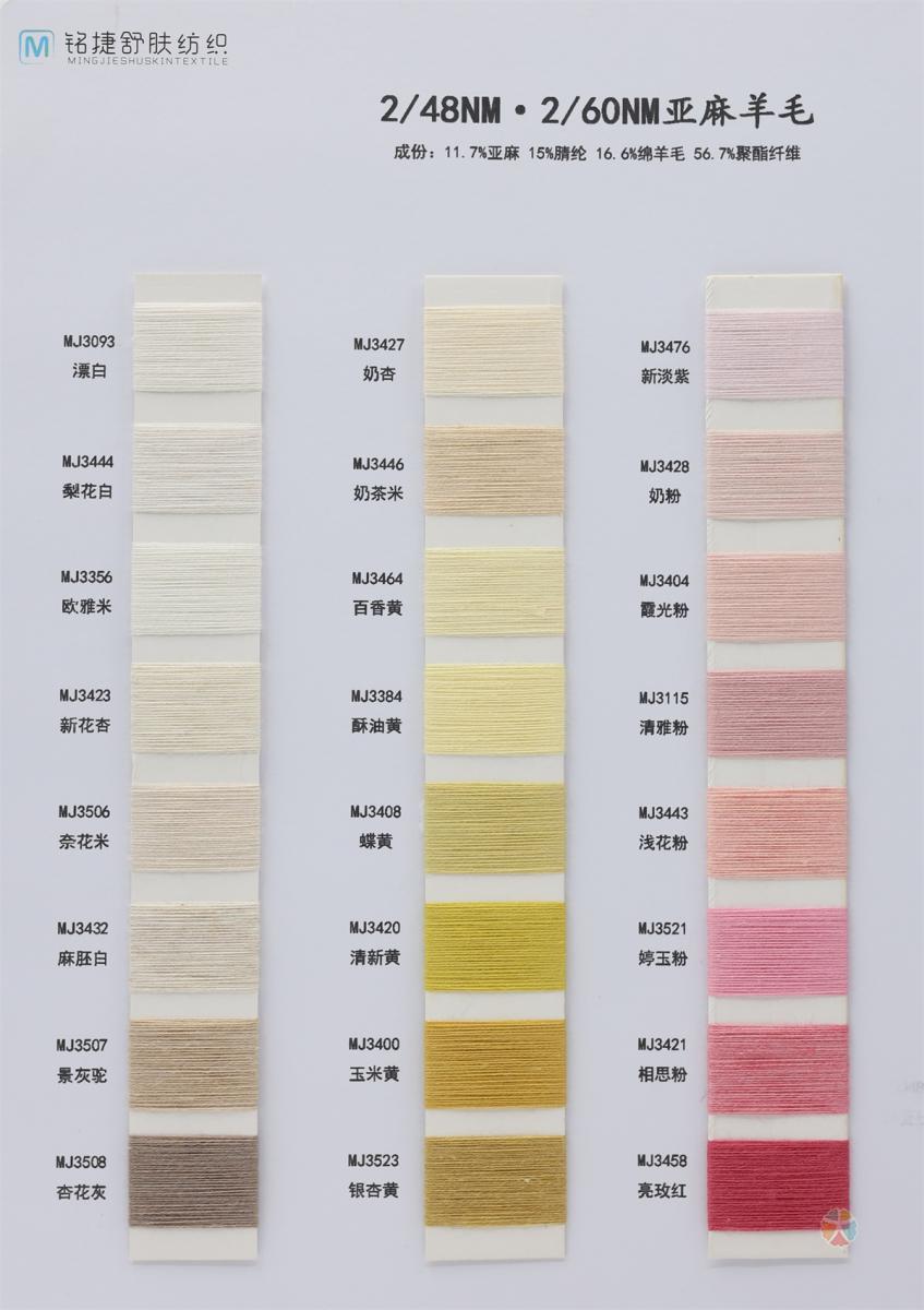主营:2/16NM亲肤100%全羊毛、2/26NM亲肤100%全羊毛90S、2/30NM亲肤100%全羊毛 2/48NM亲肤100%全羊毛 2/60NM亲肤100%全羊毛 3/20NM亲肤100%全羊毛、2/16NM锦鲤30%巴素兰羊毛、2/24NM锦鲤35%巴素兰羊毛、2/26NM锦鲤40%巴素兰羊毛、2/24NM锦鲤50%巴素兰羊毛、2/26NM玫瑰馥芮 ( 60%羊毛30%醋酸纤维10%山羊绒) ;花式纱;特种纱系列;春夏、秋冬羊毛混纺;功能性纱线开发