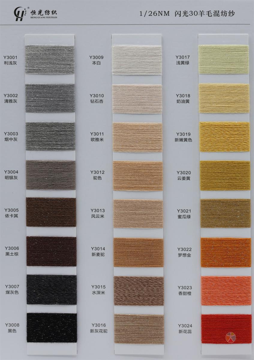 主营:@半精纺系列:亲肤33羊毛(2/60、2/48)、亲肤100%羊毛(2/17、2/26)、2/26 5羊绒、10羊绒,2//45NM亲肤6羊毛,2/48NM亲肤9羊毛 @闪光系列:2/56NM亲肤闪光30羊毛,亲肤闪光6、9羊毛系列 1/45NM亲肤闪光人造丝,1/21NM亲肤闪光幻雪棉, 1/21NM亲肤闪光GN系列 2/48NM亲肤恒丽绒 @金银丝系列 1/360 GJ丝柔金银丝 1/254 GTXT超柔金银丝 AK超细 MH常规 花式纱