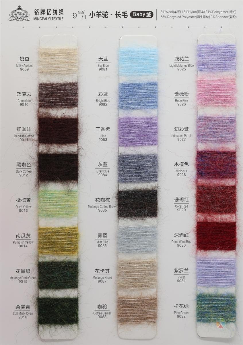 主营:3.5/1段染羊毛喷毛纱、3.3/1渐变毛呢绒、3.5/1幻彩兔毛圈圈纱、2.8/1渐变羊驼彩花绒、18/1小羊驼圈圈纱、3.8/1羊毛喷毛纱、6/1渐变闪光马海毛、3.5/1大羊驼圈圈纱、6.5/1曲珠、包芯纱、北极绒、纤绒纱、安迪绒、莫代尔、安哥拉、双曲、仿亚麻、韩国冰丝、马海毛、喷毛纱、磨毛纱、抗菌纱、夜光纱、混纺纱、渐变纱、段染纱、花式紗|