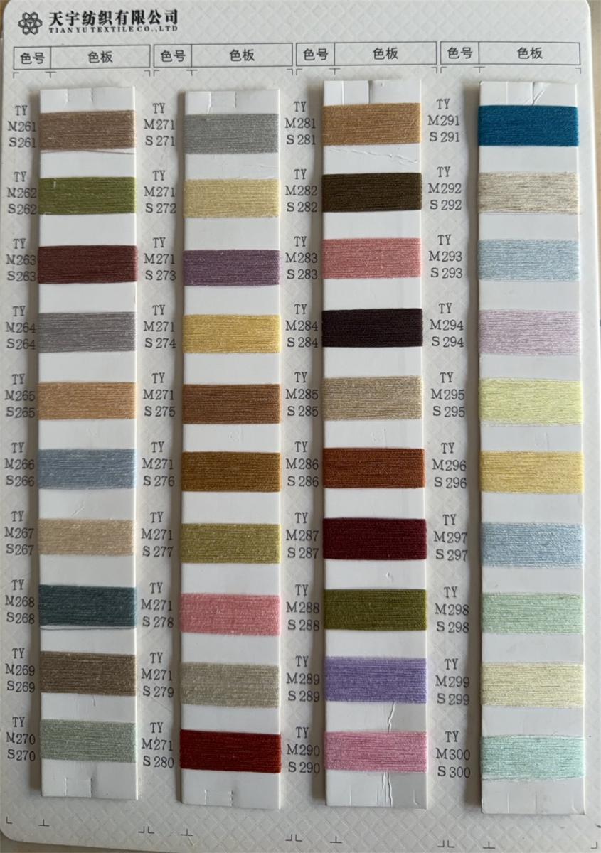 主营:本公司专业纺织纱线已三十余年,主营春夏秋冬四季纺织产品,染体一纺自销自产,每年坚持开发新产品,以及更新升级每一个产品,探索研究每年的流行色系以及时装设计的各种风格元素开发新产品,不断创新,主营产品有羊毛系列,麻纱系列,纯棉系列,铁公鸡仿貂系列,花式纱系列,以及各种混纺成份系列等等,每一个产品均有大量胚纱以及色纱现货供应。染色匀为环保染料!欢迎来电咨询