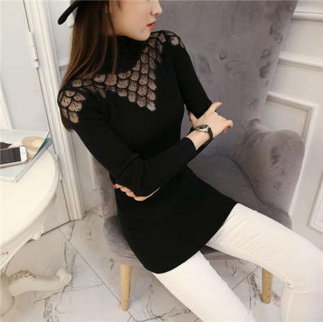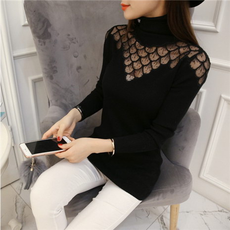 高领镂空套头针织衫