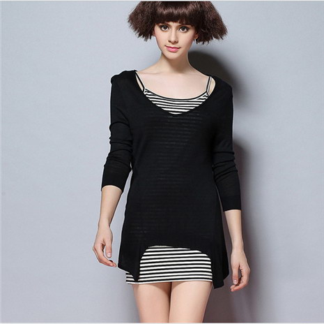 韩国街拍潮套头镂空罩衫中长款针织衫女黑色