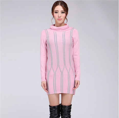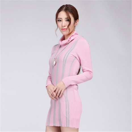 姚领高领羊毛打底裙修身显瘦条纹针织包臀裙A字裙