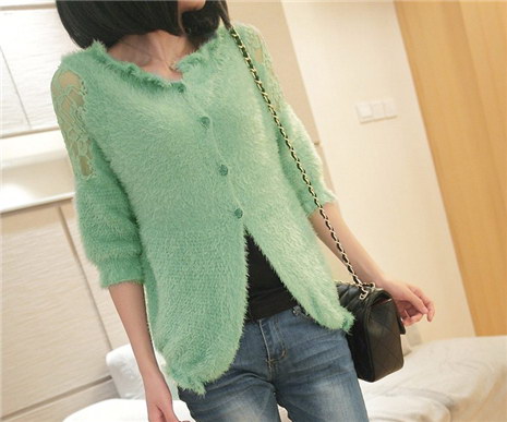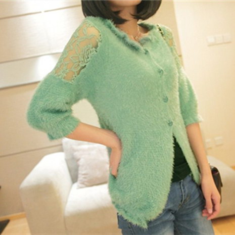 春装新款2016韩版甜美蕾丝镂空披肩宽松马海毛衣外套针织衫开衫女